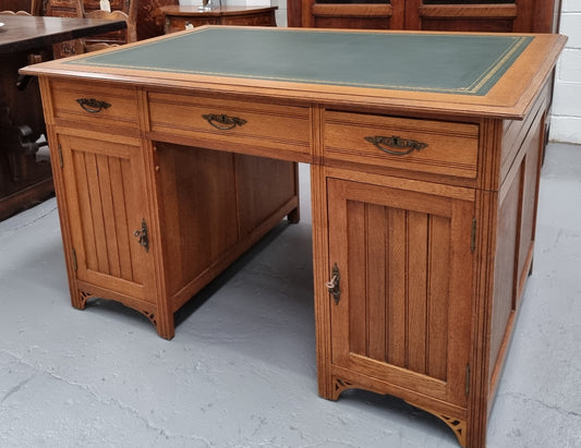 French Oak Art Deco Full Partners Desk W...