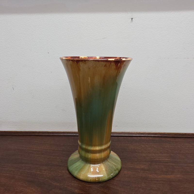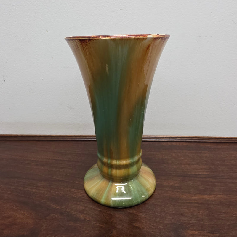 1930s Cornwell Brunswick Pottery Green & Brown Drip Glaze Vase