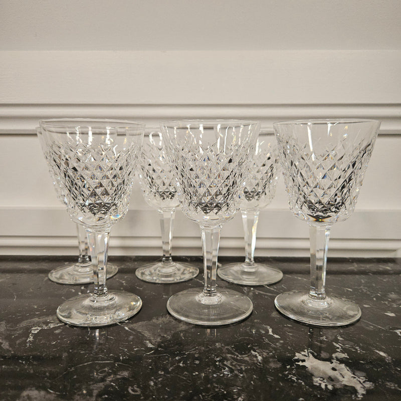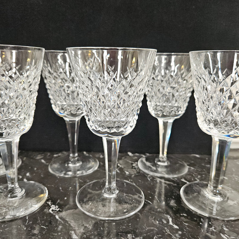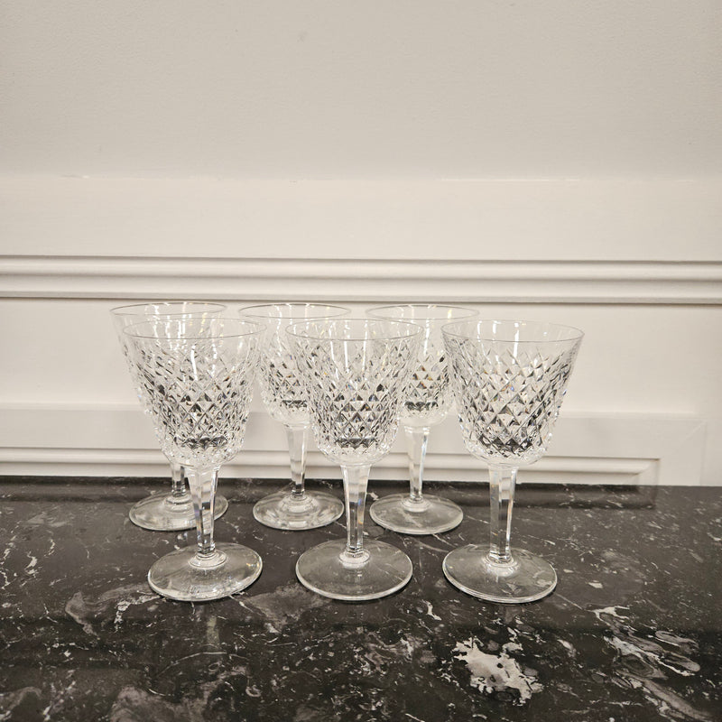 Stunning set of 6 Waterford stemmed cut crystal wine glasses in the discontinued "Alana" Pattern. All marked Waterford. No Chips, Cracks or blemishes. Please see photos as they form part of the description.