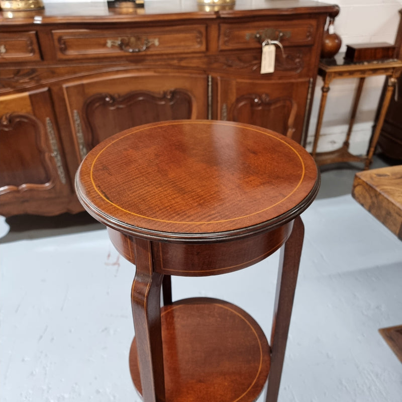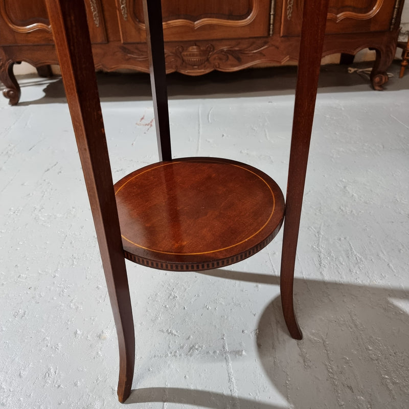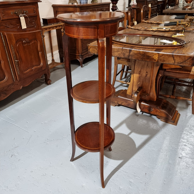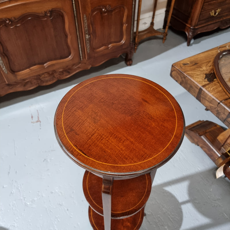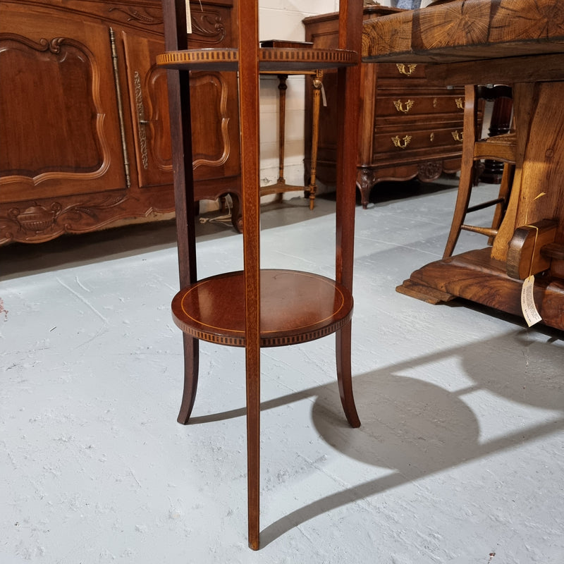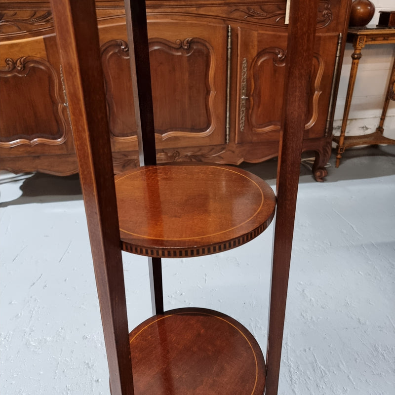 A Regency style Mahogany three tier stand with decorative inlay. Sourced locally and in good original detailed condition. Please view photos as they help to form part of the description and condition.