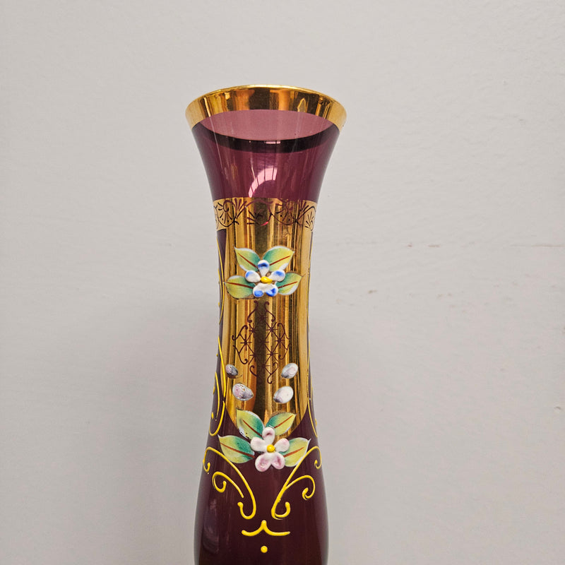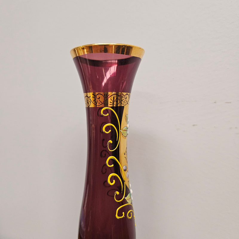 Beautiful amethyst, gilt and enamel vase, it is in good original condition. Please see photos as they form part of the description