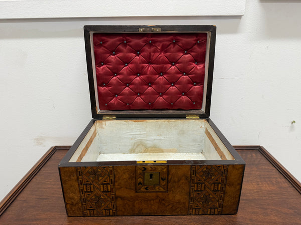 Stunning detailed Antique 19th Century Turnbridge wake-style work box, it is in good original condition with some signs of age. Please see photos as they form part of the description. Please note it does not come with a key.