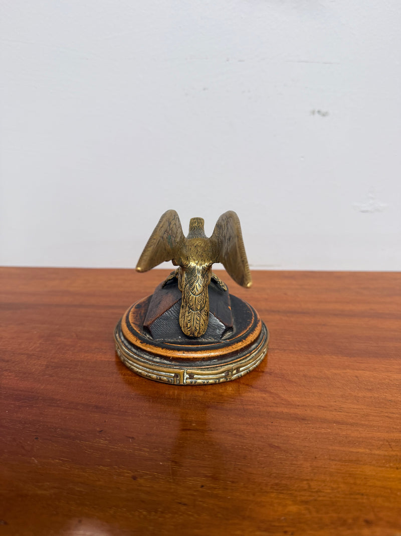 Antique Brass Eagle Paper Weight On Walnut Base
