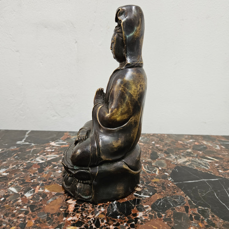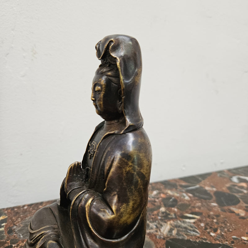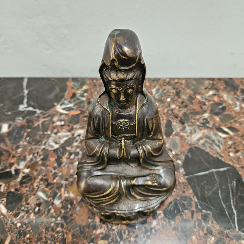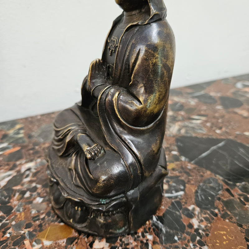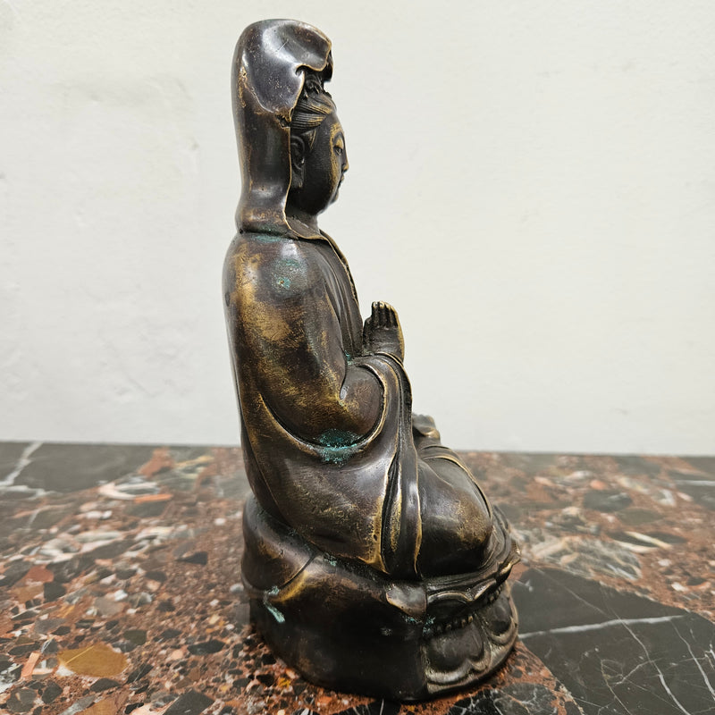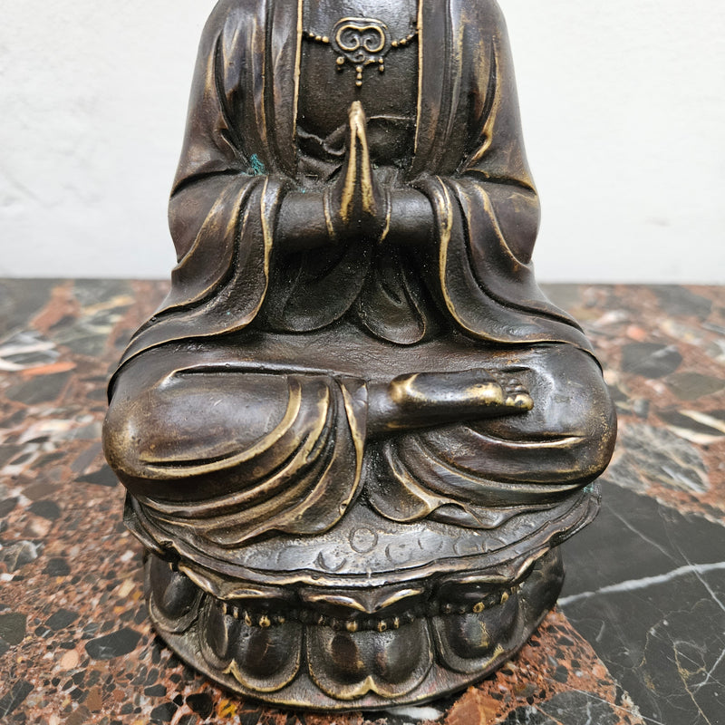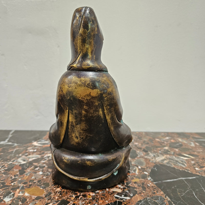 Beautiful Antique bronze Buddha with a scroll intact inside. It is in good original condition. Please see photos as they form part of the description and condition