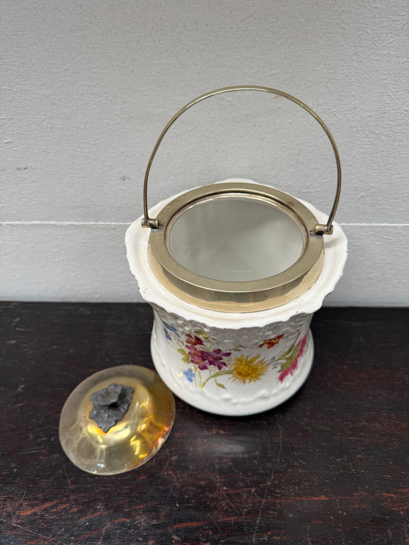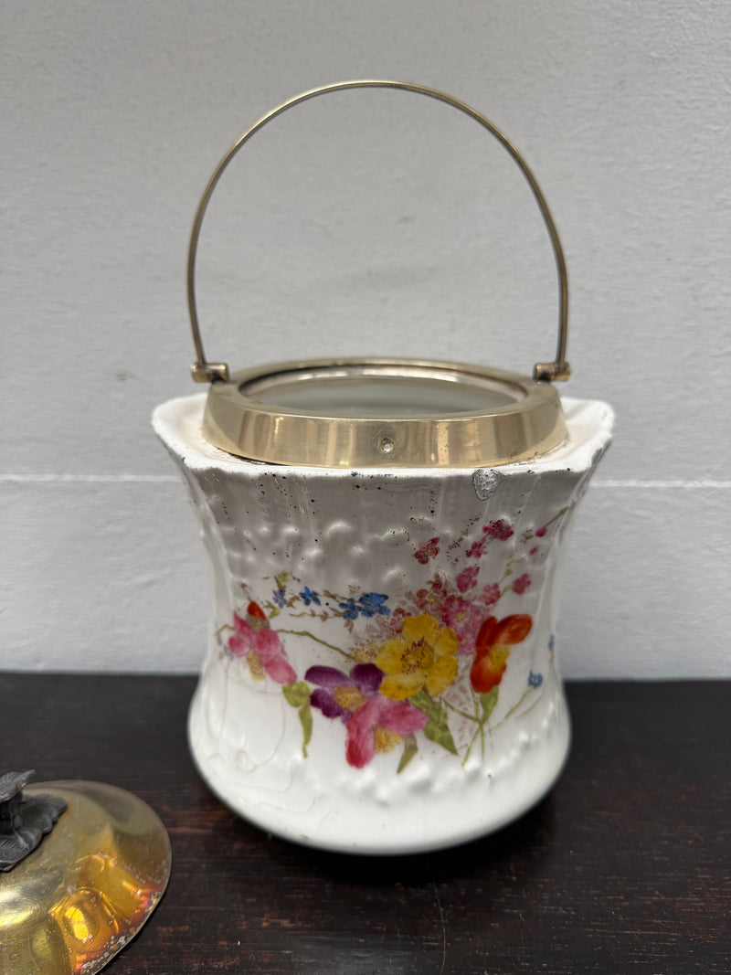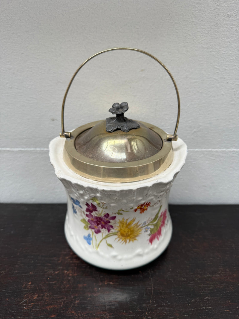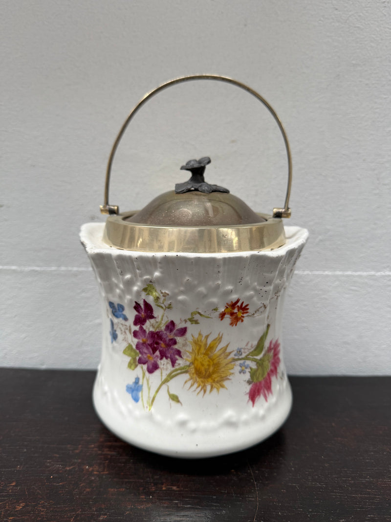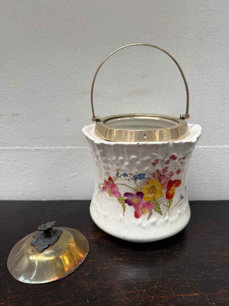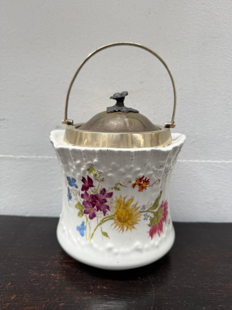 Pretty antique Carlton Ware biscuit barrel. This item has heavy crazing and some minor chips. Please see photos as they form part of the description.