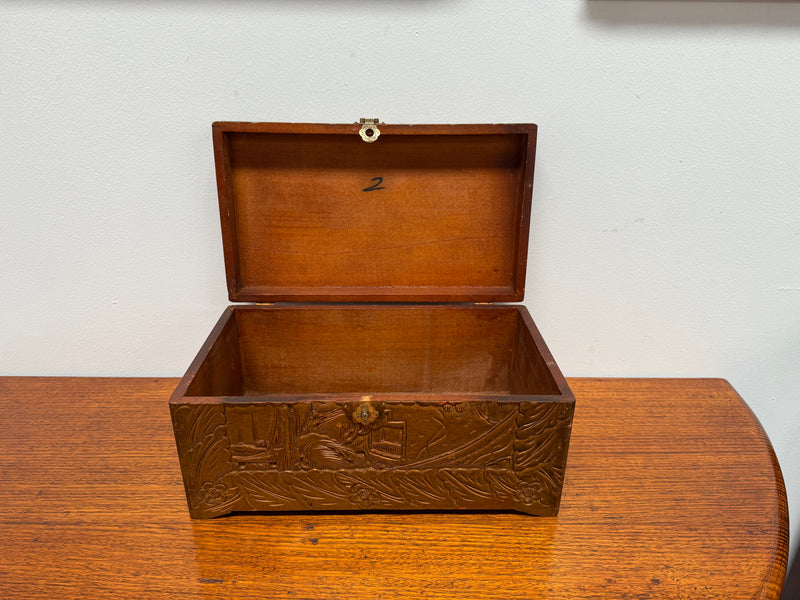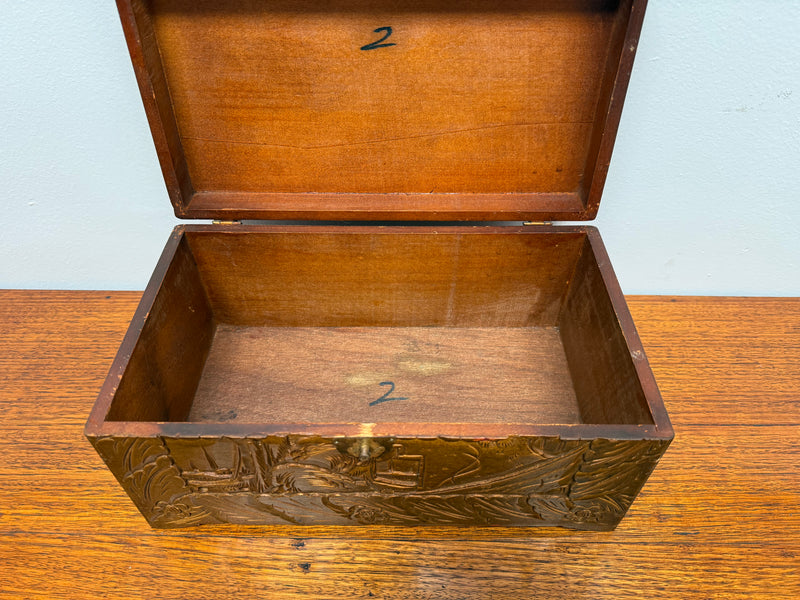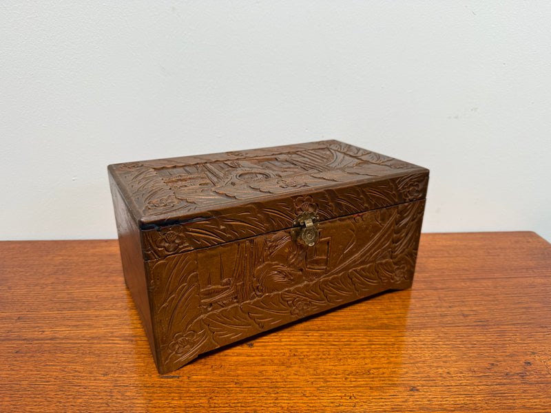 Antique Carved Camphor Wood Chest Ideal Jewellery Box