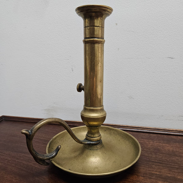 Antique adjustable middle brass candle holder chamberstick, it is in good original condition. Please see photos as they form part of the description.