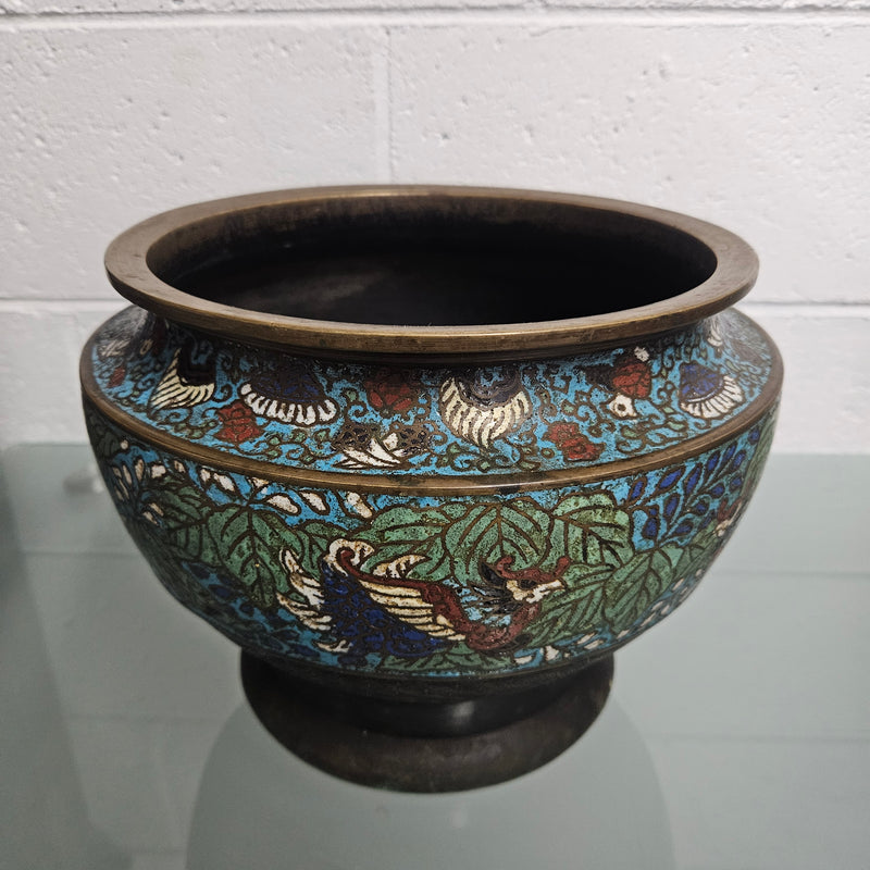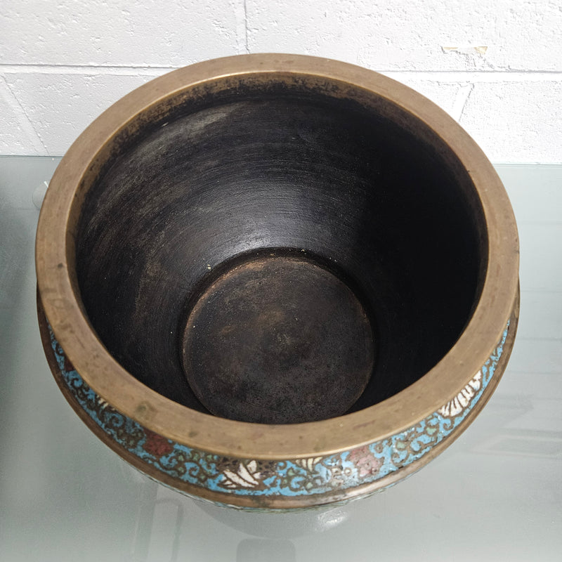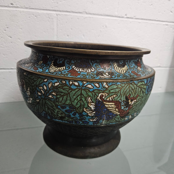 Qing Dynasty Antique Chinese bronze and cloisonne planter, it is in good original condition. Please see photos as they form part of the description.