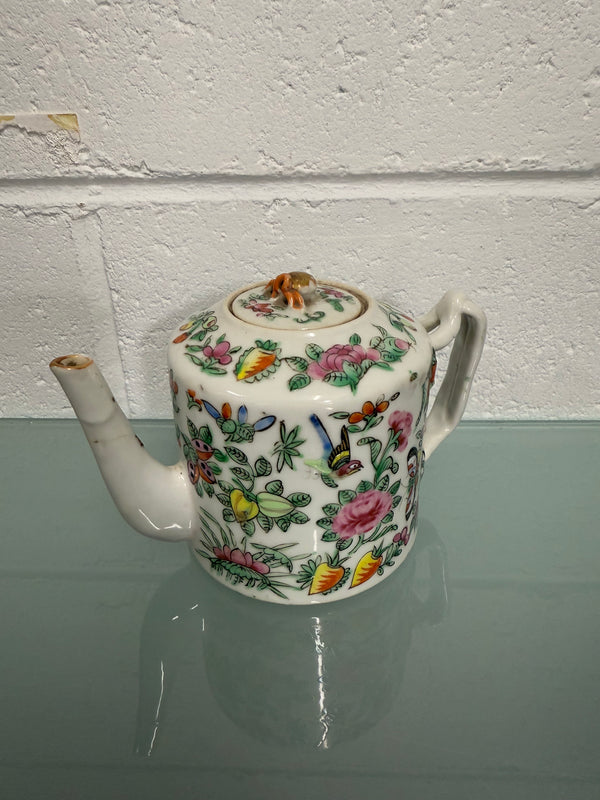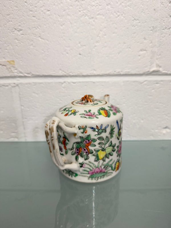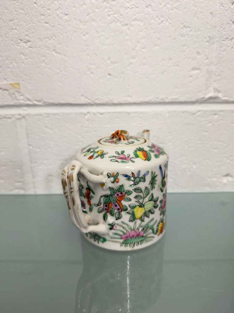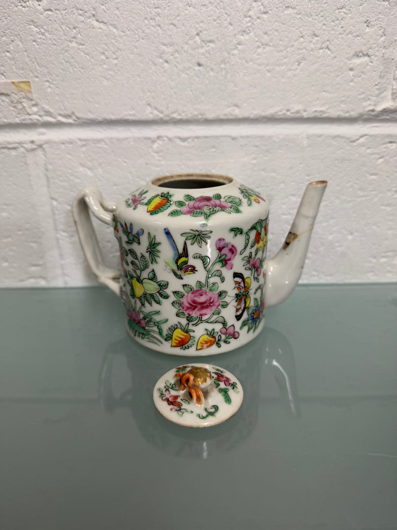Antique Chinese miniature Famille rose teapot C1880, in as found condition with a repair to the spout, in otherwise good original condition for the age. Please see photos as they form part of the description.