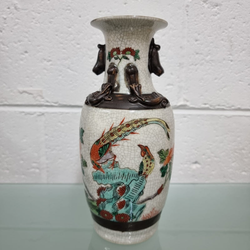 Antique Chinese Peacock Bird Vase Signed Base