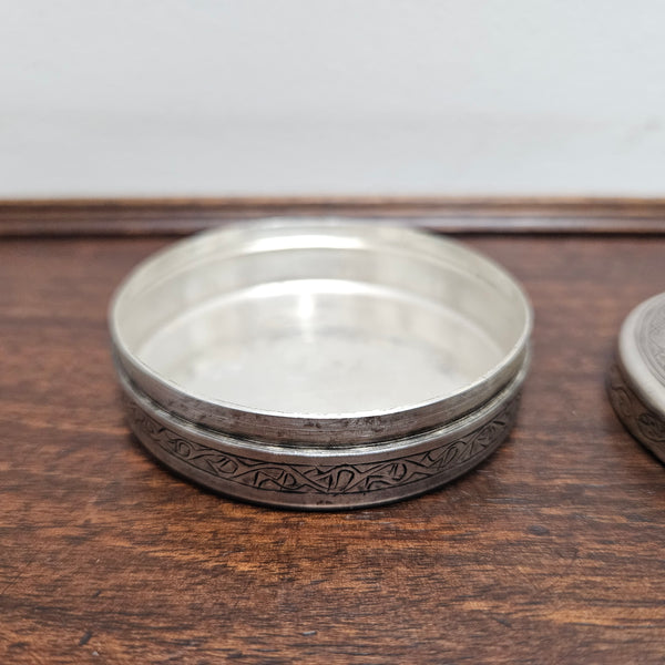 Interesting Antique Egyptian silver Trinket hallmarked box, 90% silver. It has an amazing pattern and marked to the base. It is in good original condition. Please see photos as they form part of the description.
