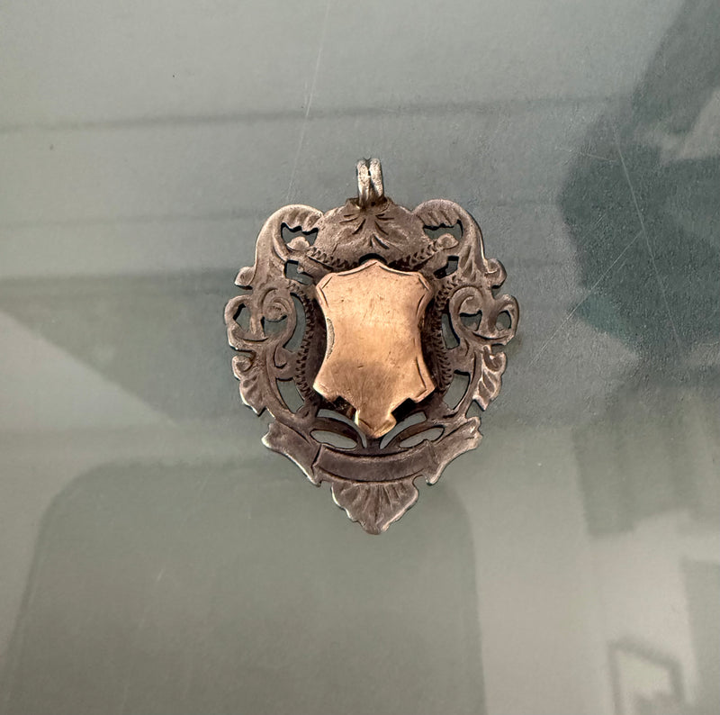 Antique English fob medallion with rose gold shield. Circ:1900's In good original condition. Please see photos as they form part of the description.