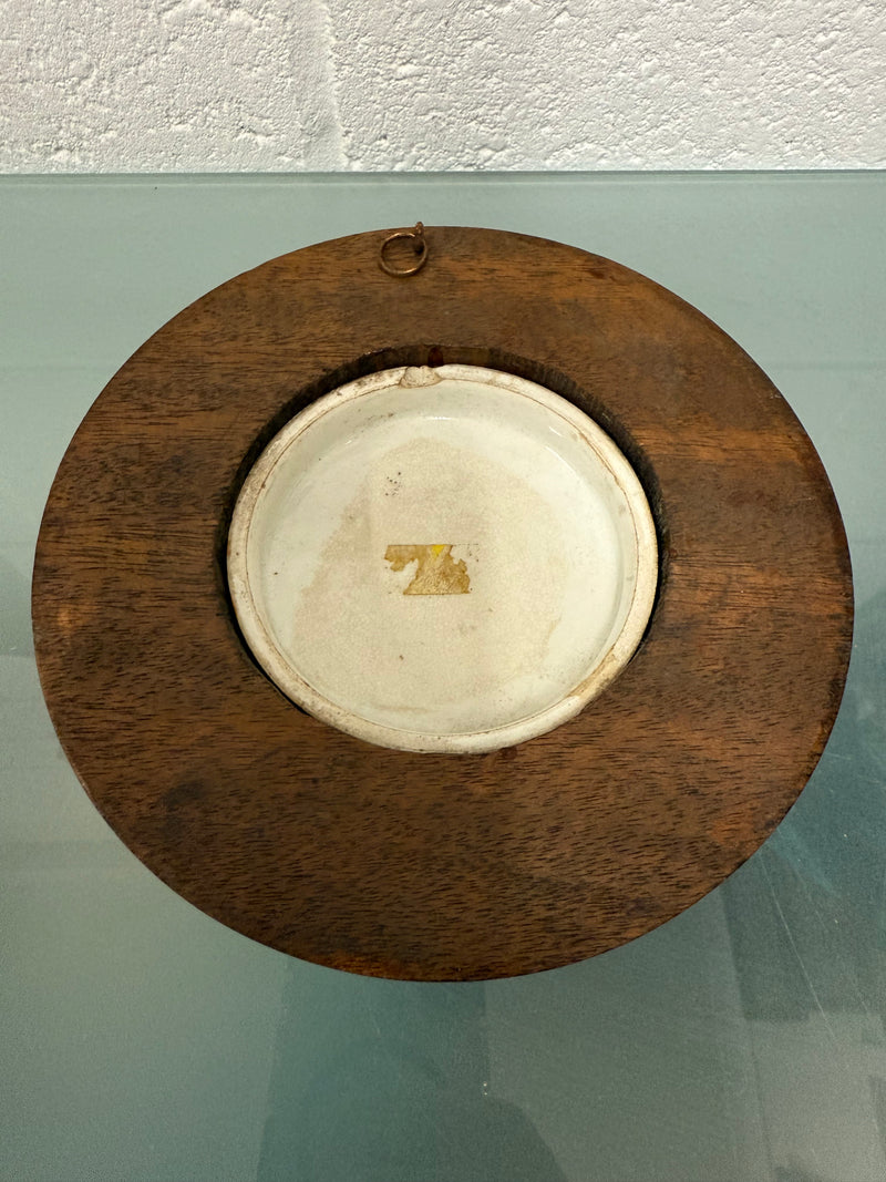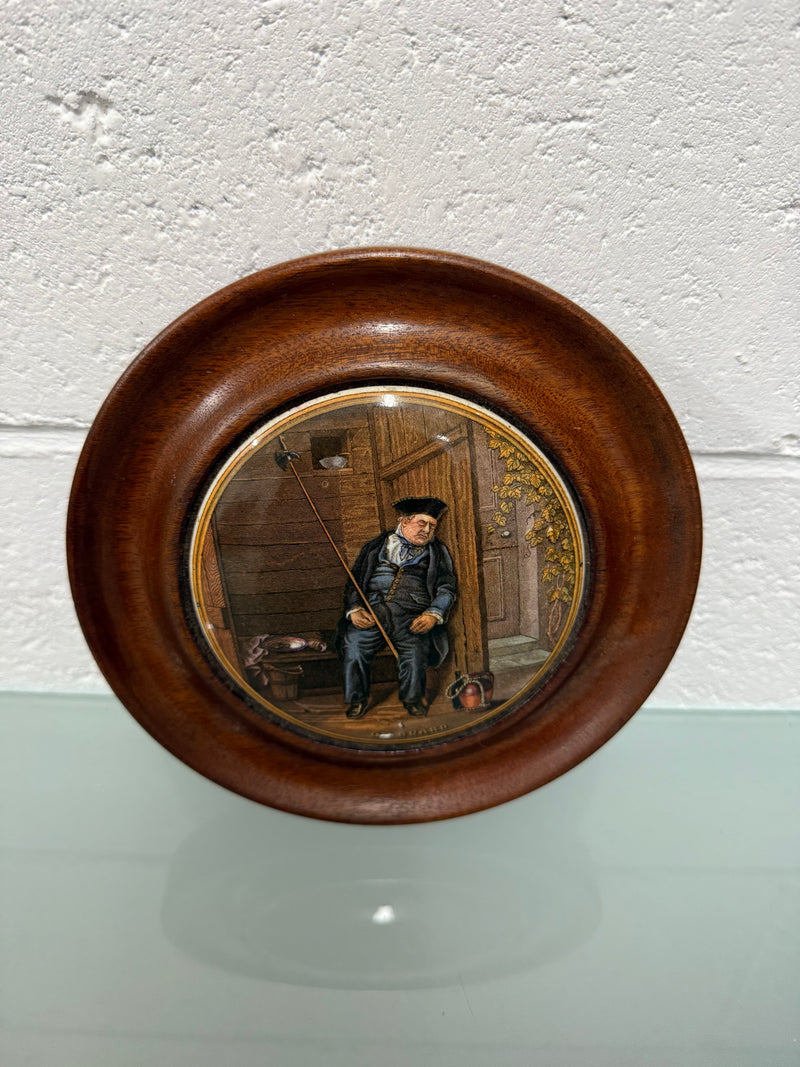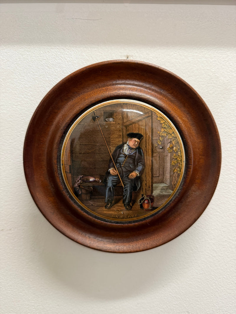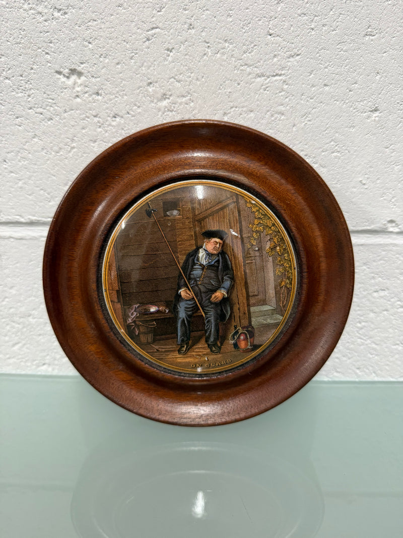 Antique Framed Pratt Ware Pot Lid "On Guard"