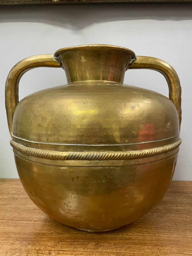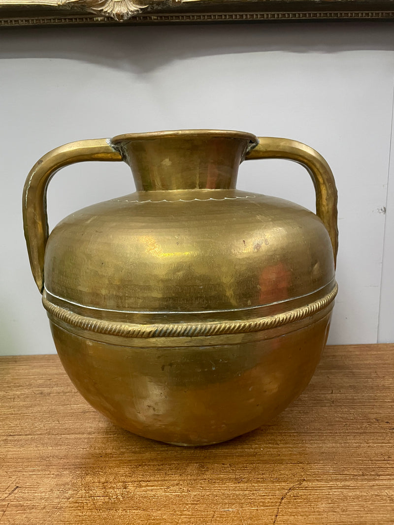 Antique French Arts & Crafts Style Brass Urn With Handles