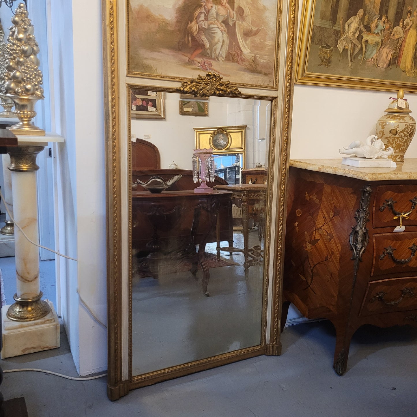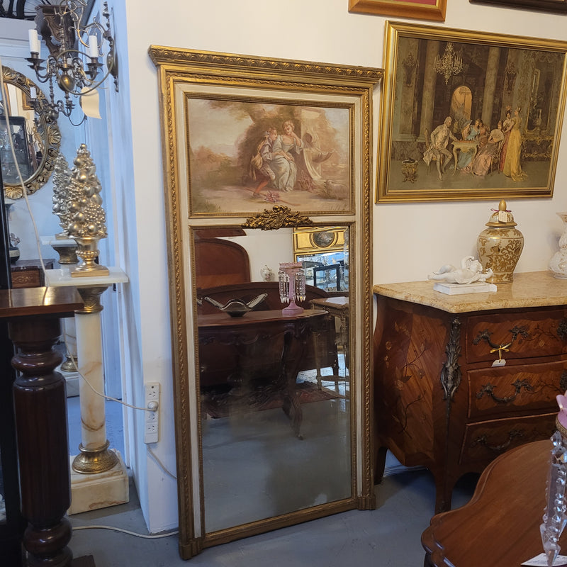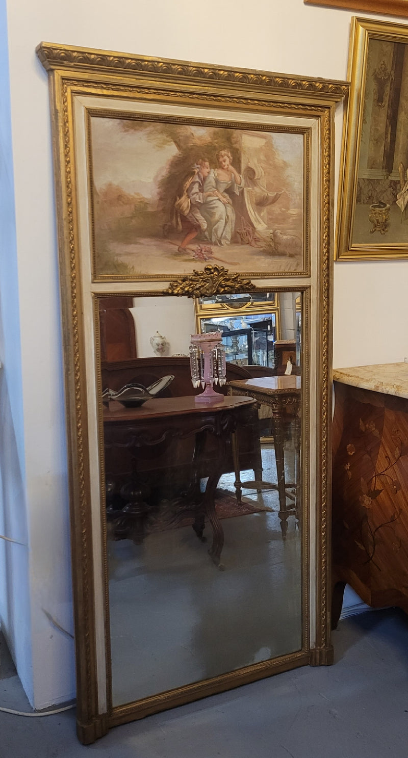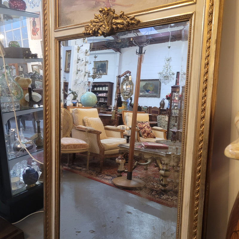 Antique French Gilt & Hand Painted Decorative Trumeau Mirror