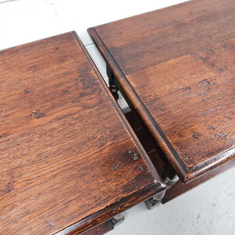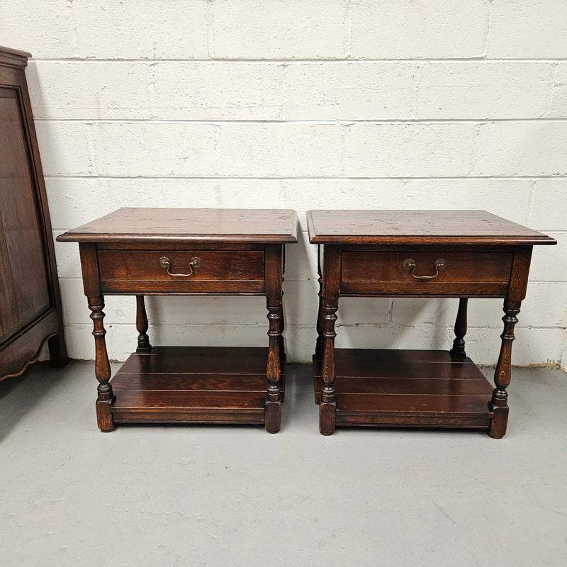 Lovely pair of French Oak plank bedside tables with one drawer and base at the bottom. They are in good original condition. Please see photos as they form part of the description