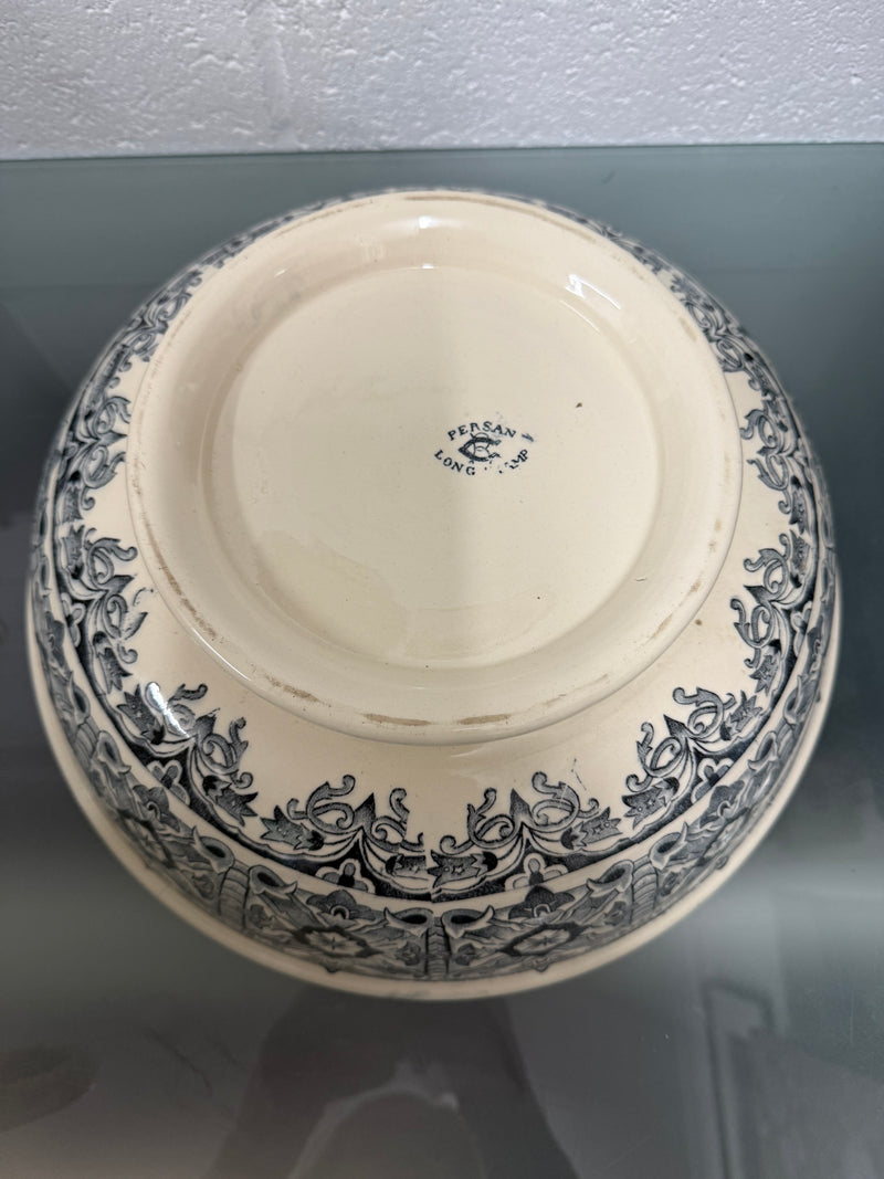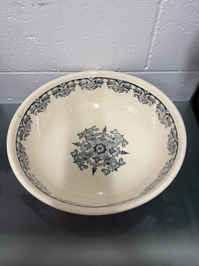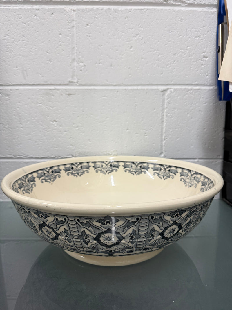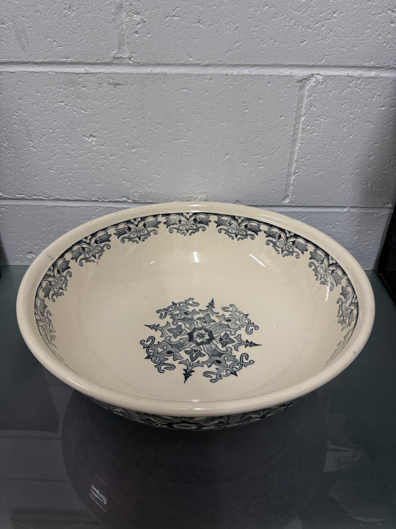 Antique hand painted large bowl from circa 1880's. Features classical blue and white pattern in as found condition. Please view photos as they help to form part of the description and condition. slight A/F