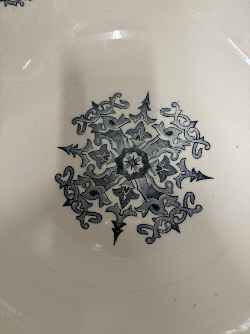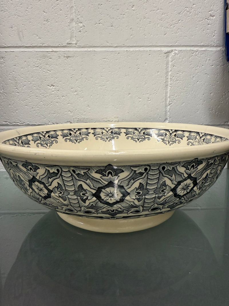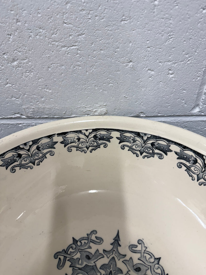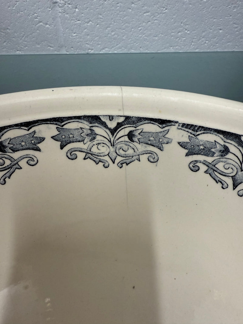 Antique hand painted large bowl from circa 1880's. Features classical blue and white pattern in as found condition. Please view photos as they help to form part of the description and condition. slight A/F