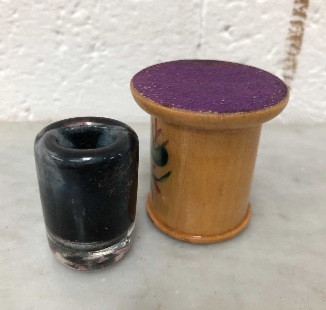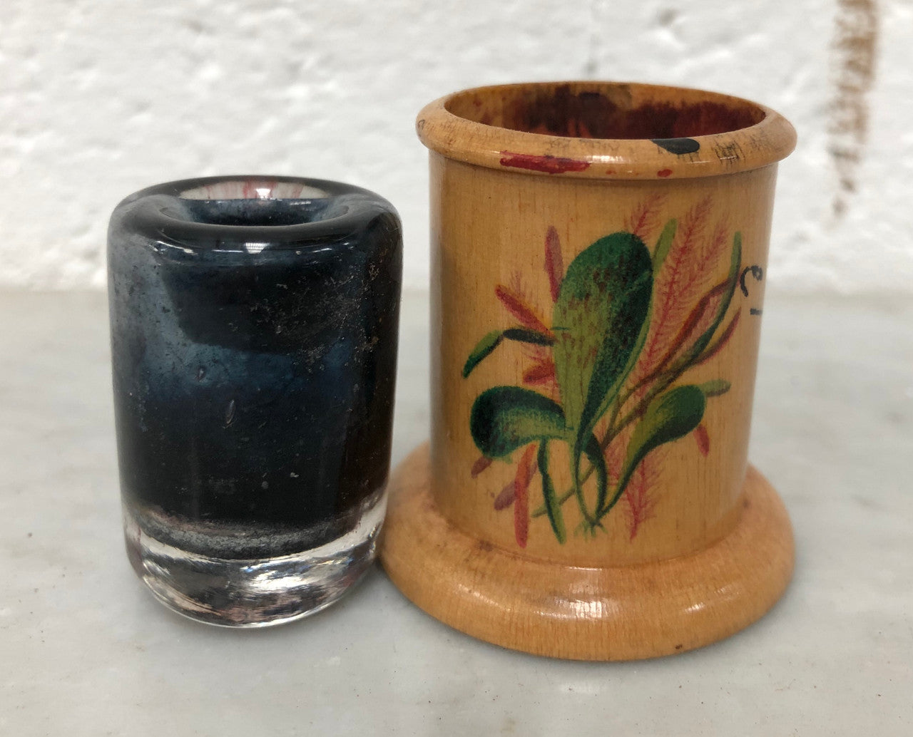 Antique hand-painted Treen inkwell. In good clean original condition.