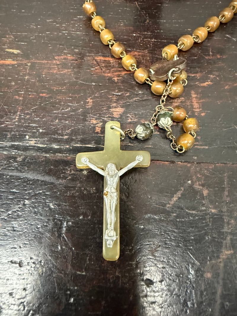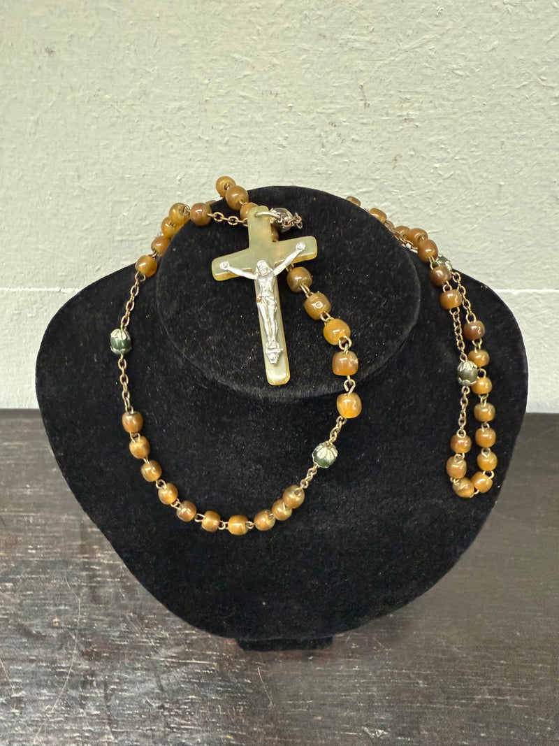 Antique horn Irish rosary beads. Souvenir of Knock.. In good original condition. Please see photos as they form part of the description and condition.