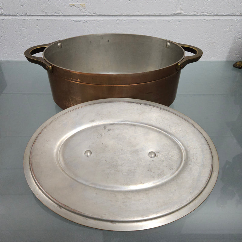 Antique Large Brass Handled & Copper Tin Lined Pot