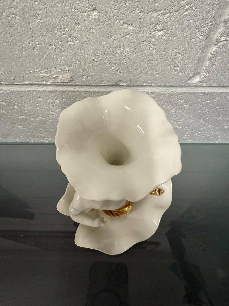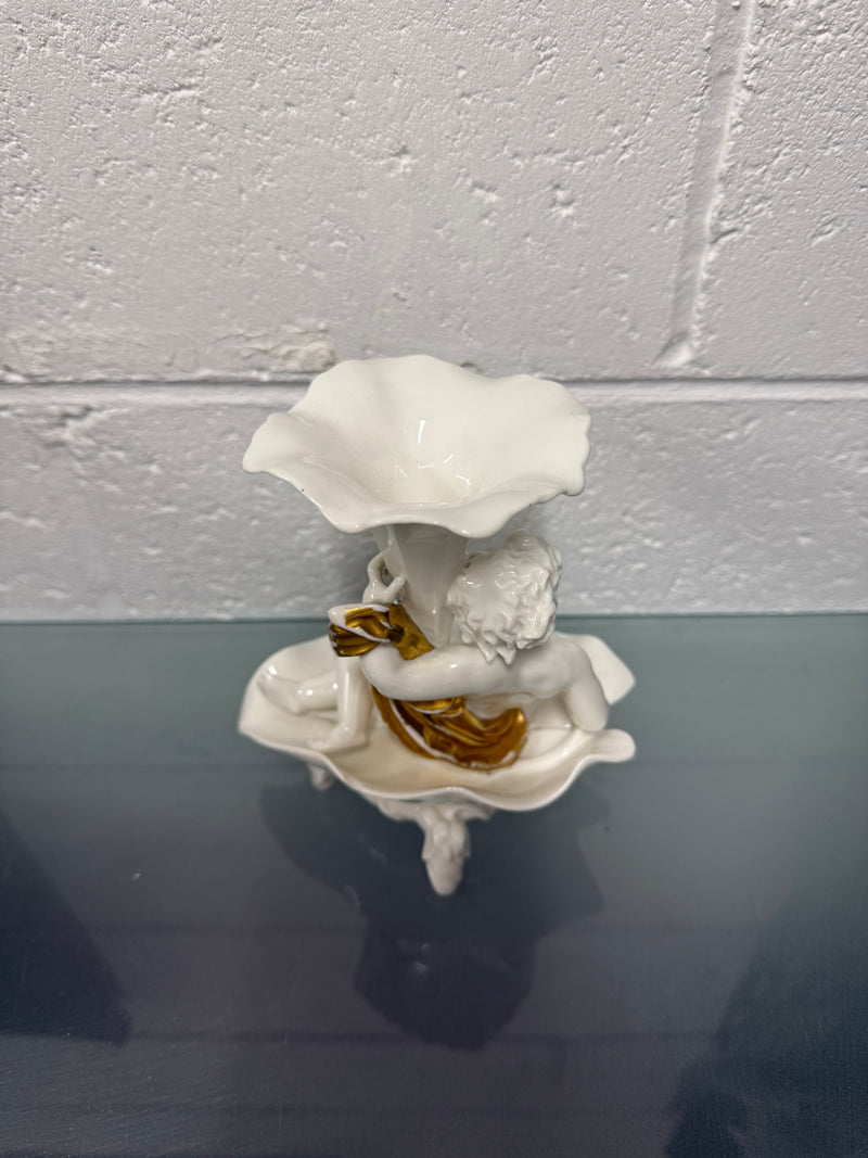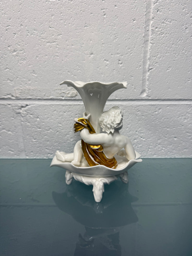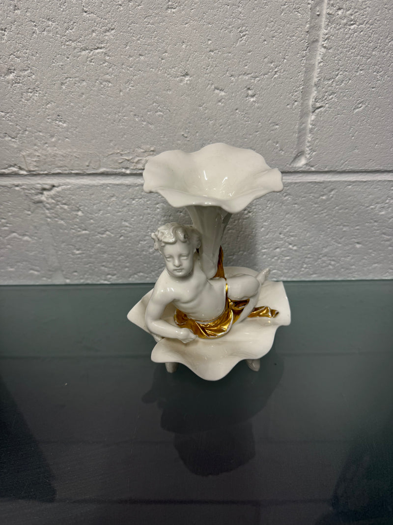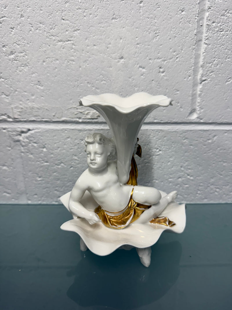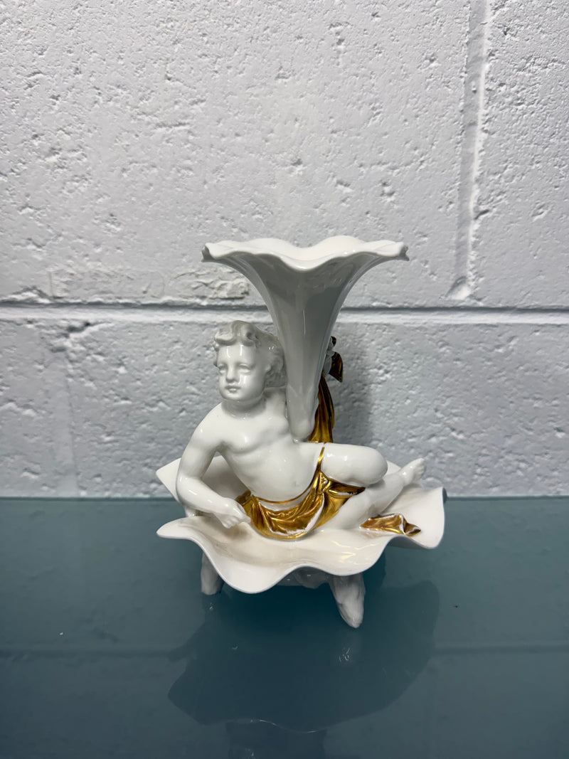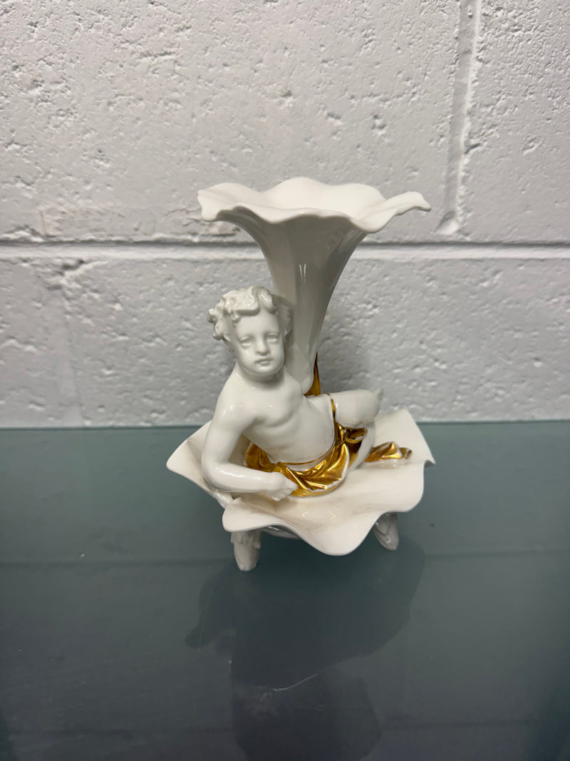 Lovely Antique Limoges signed M.Redon cherub vase in gold and white. It has two small chips to the bottom rim otherwise in good original condition. Please see photos as they form part of the description.