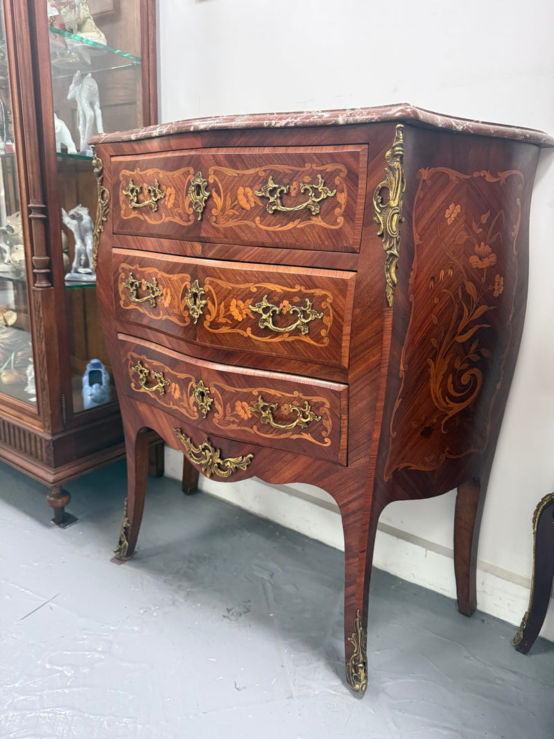 Antique Louis XV style Rosewood Marble Top Commode