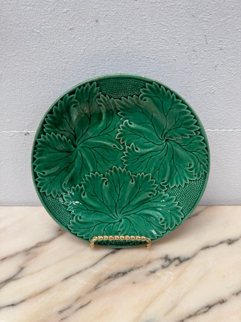 French Antique Majolica leaf design green plate, it is in good original condition with some crazing and signs of age. Please see photos as they form part of the description.