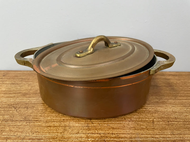 Antique Small Brass Handled & Copper Tin Lined Pot