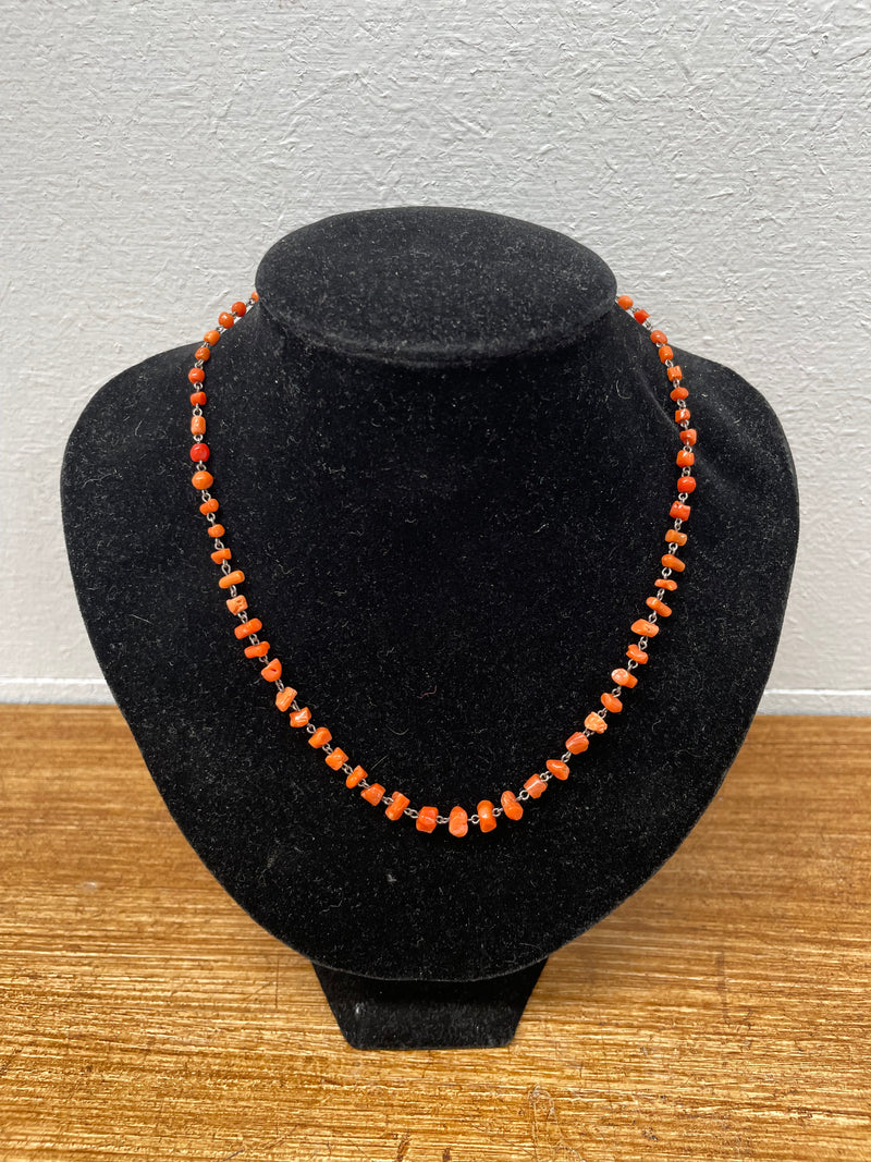 Very pretty antique natural coral choker necklace joined by chain. In good original condition. Please see photos as they form part of the description.