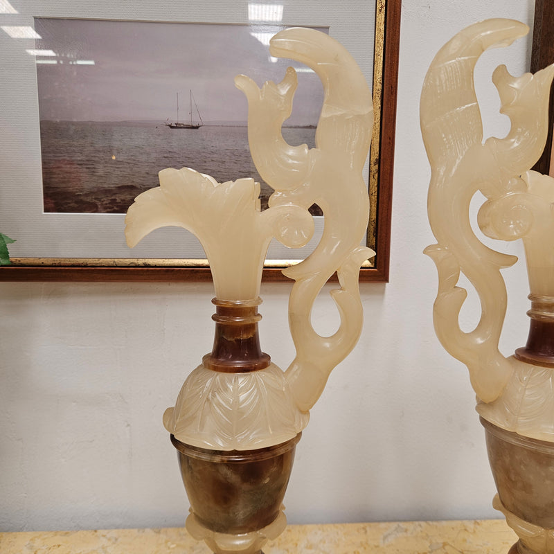 Stunning pair of Antique Alabaster Urns, they are Circa 1920's and in good original condition. Please see photos as they form part of the description