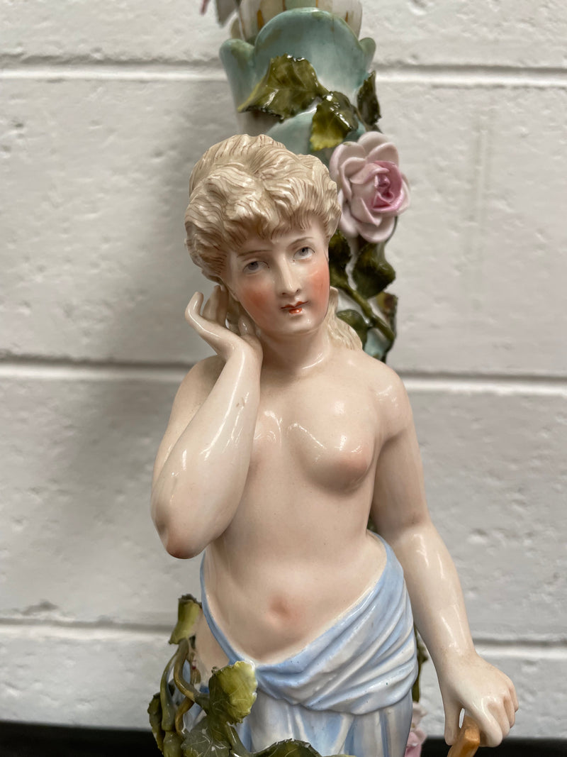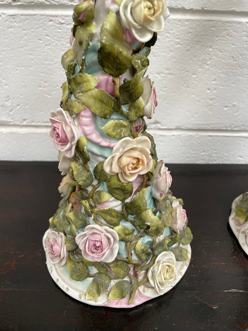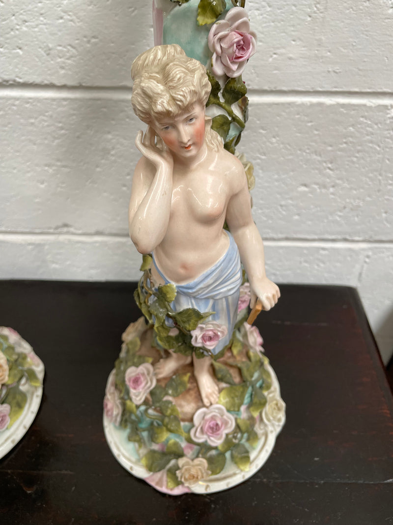 Antique pair of good quality large Sitzendorf candle holders. They are in good original condition. There are some chips on the leaves and flowers, Please see photos as they form part of the description and condition.