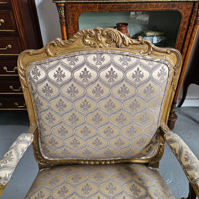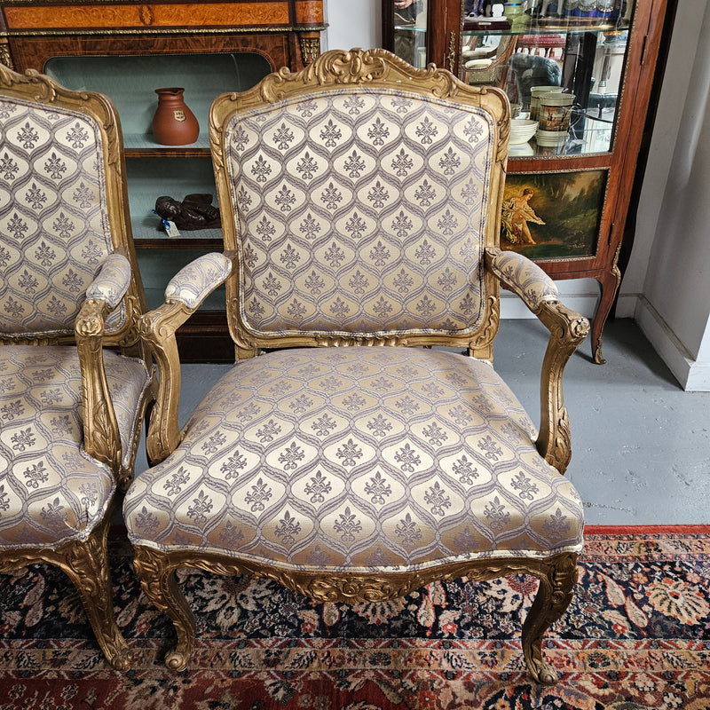 Antique Pair Reupholstered Louis XVth Style Giltwood Armchairs