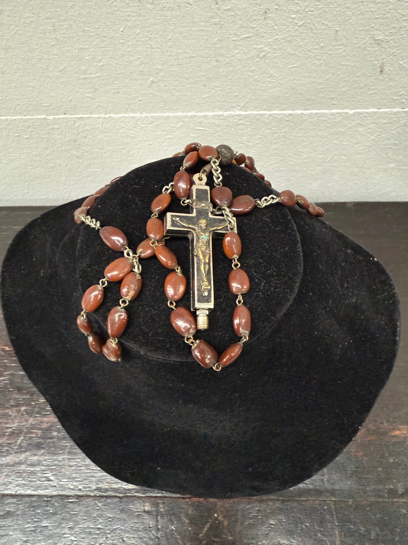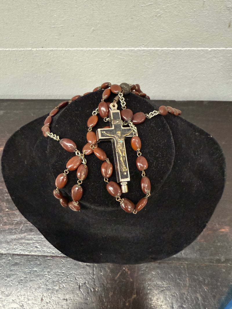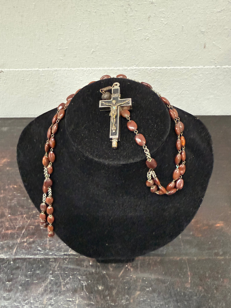 Antique Roma Relic Cross and Rosary Beads