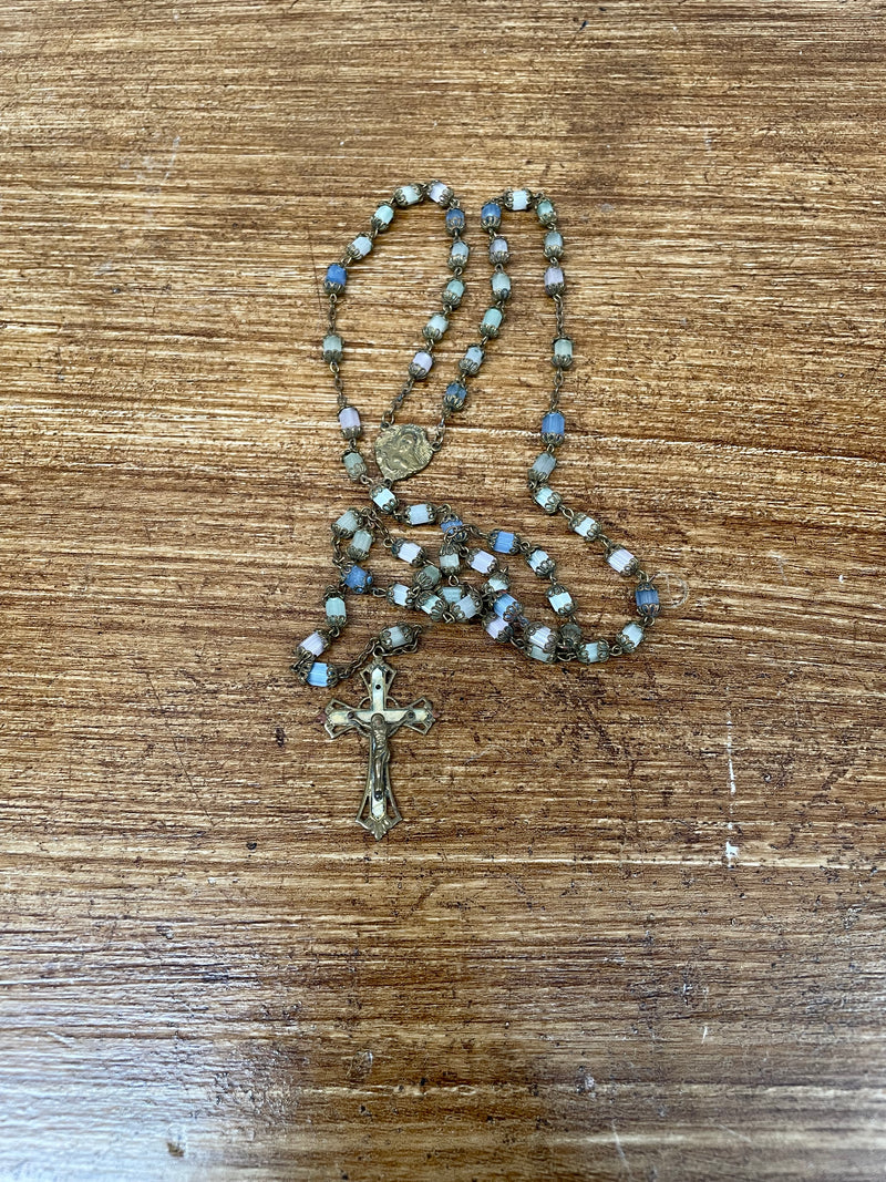 Antique rosary beads featuring gilt metal and cut crystal. In good original condition. Please see photos as they form part of the description.