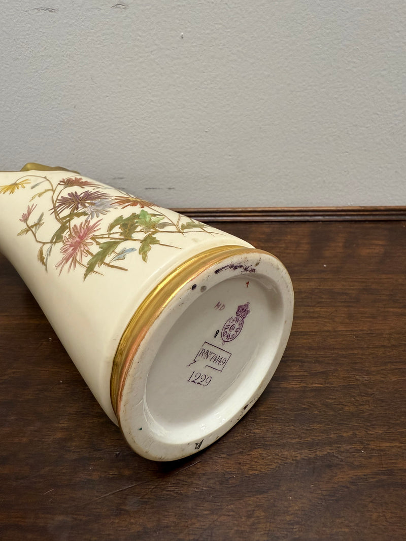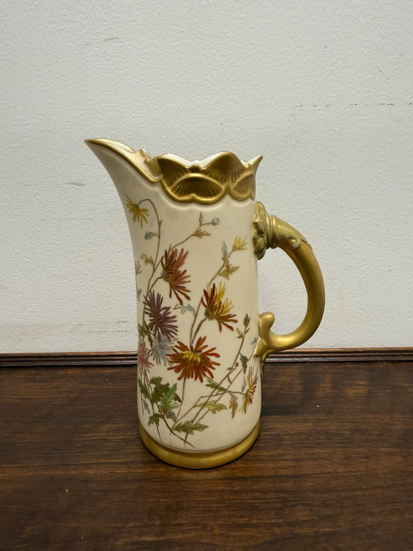 Antique hand painted blush ivory Royal Worcester pitcher, it has a floral design and is in good original condition. It is signed to the base. Please see photos as they form part of the description.