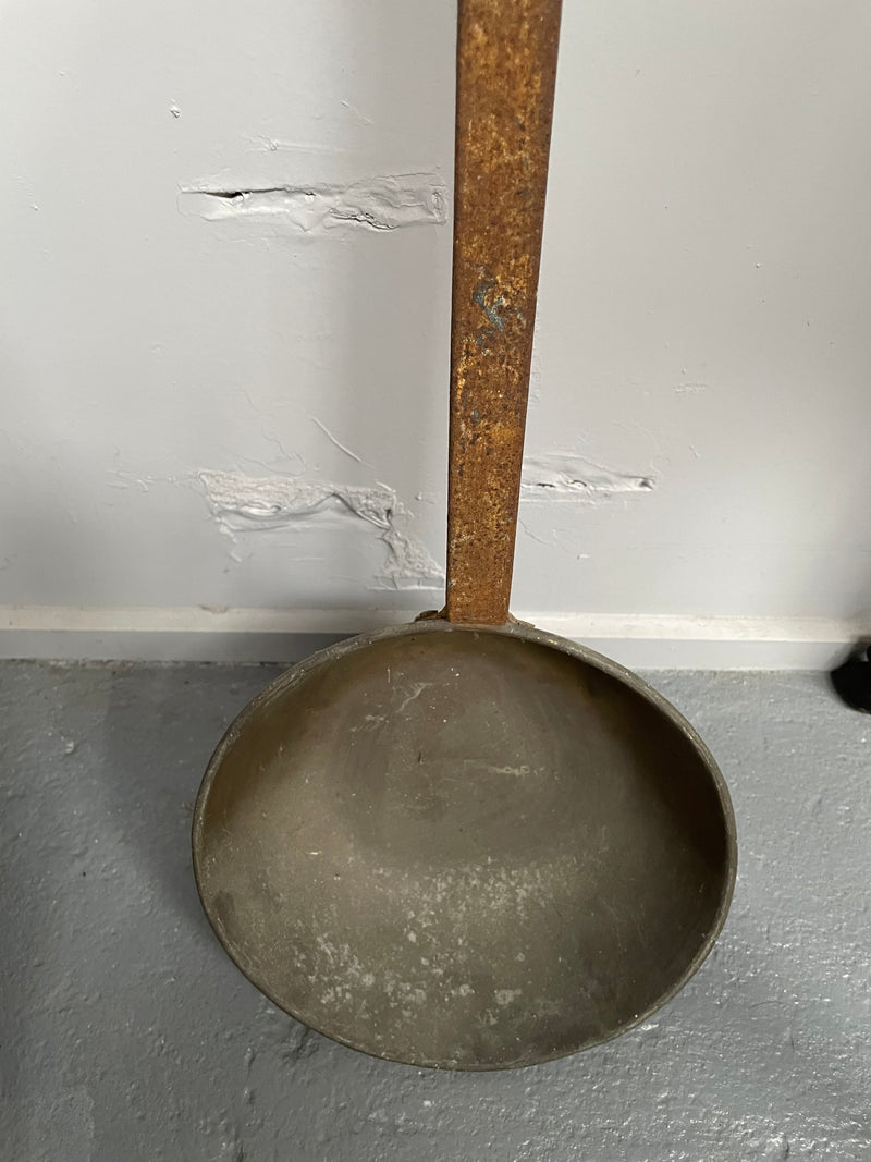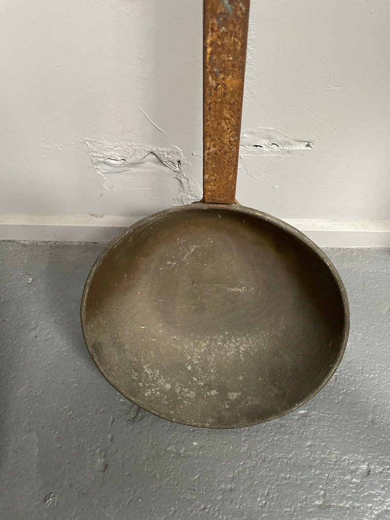 Antique Rustic Long Handled Brass Pot
