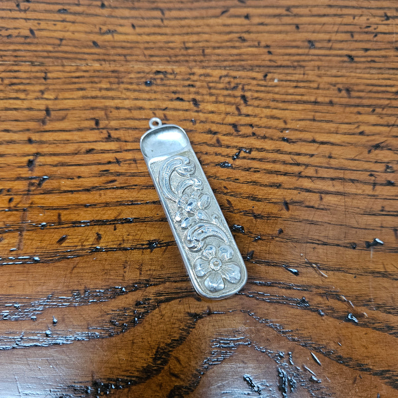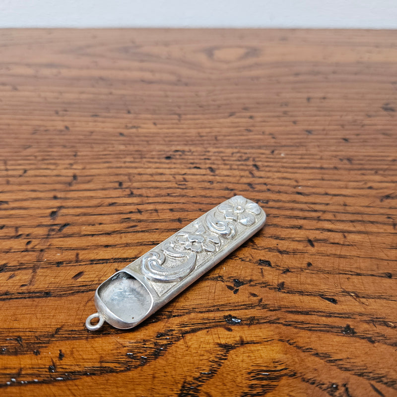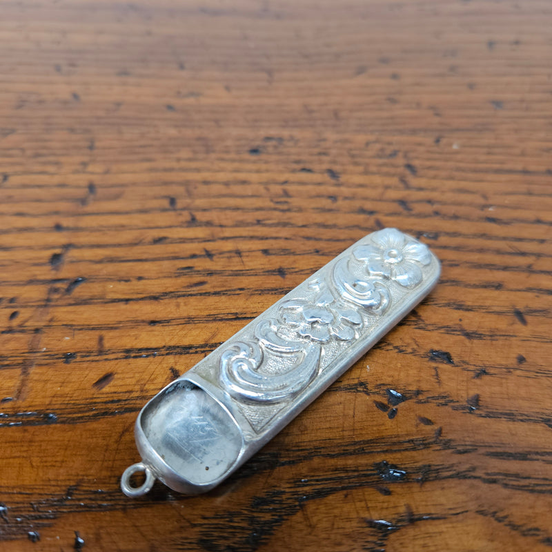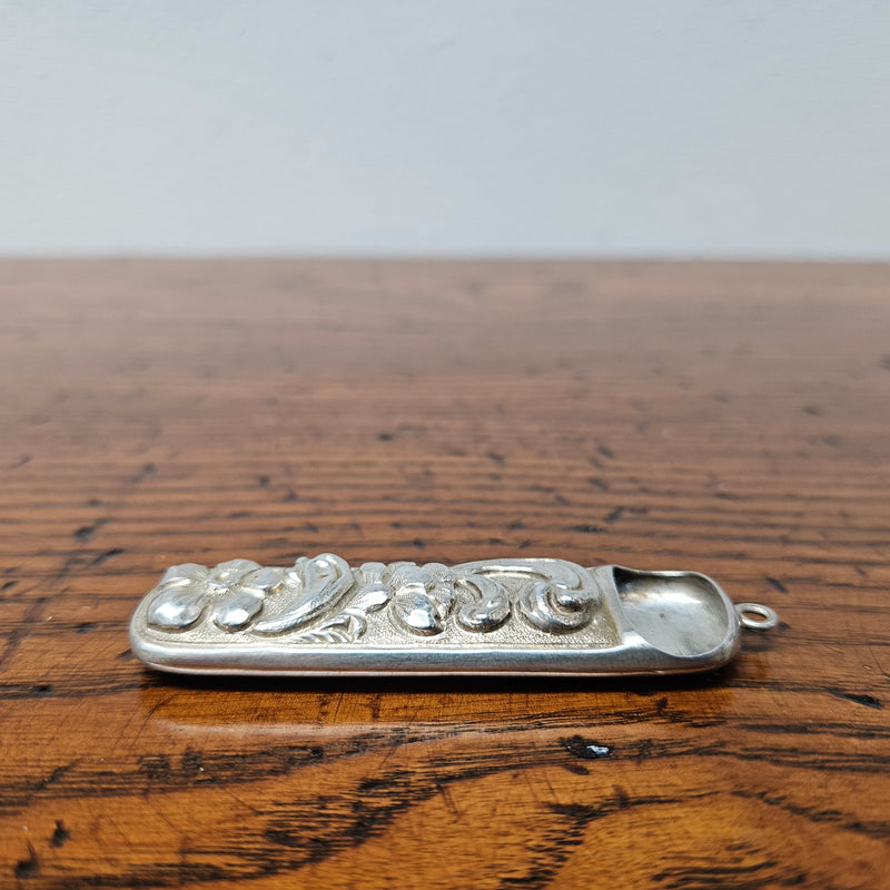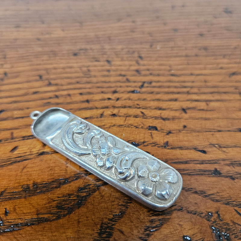 Antique C1890's Sterling Silver repousse worked chatelaine needle holder with floral details. It is signed on the inside and to the back. It is in good original condition. Please see photos as they form part of the description and condition.