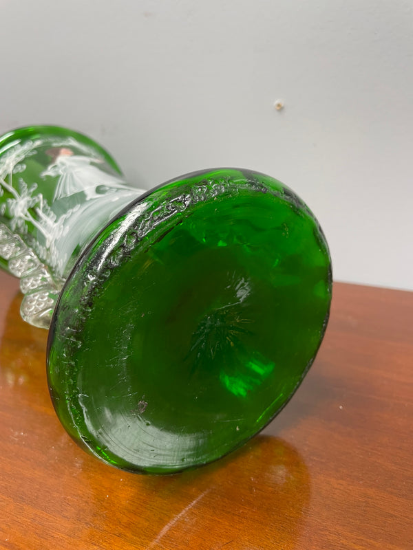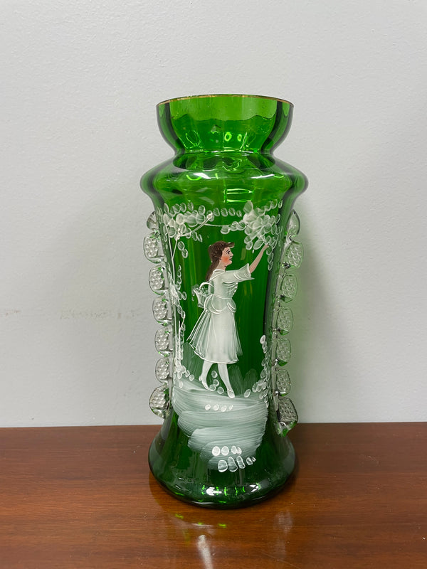 Antique Victorian Mary Gregory Green Tall Vase Hand Painted