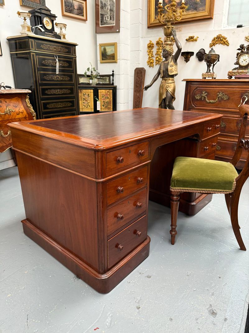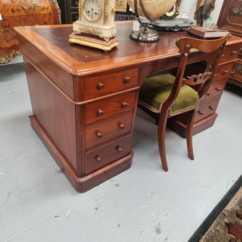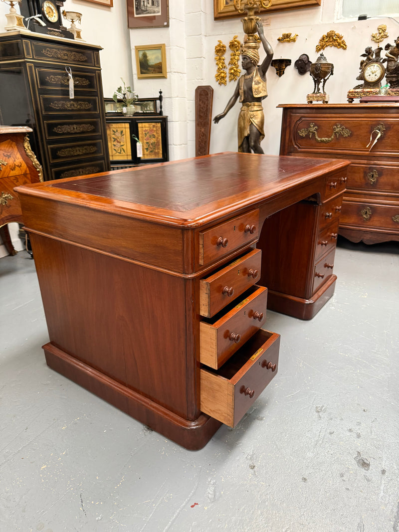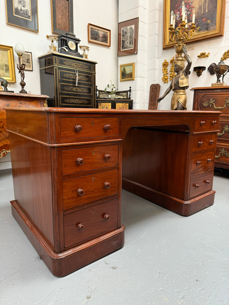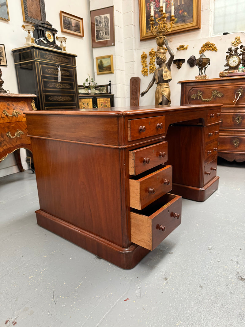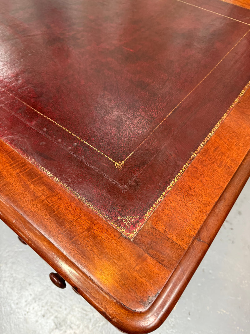 Antique Victorian walnut partners desk, in good detailed condition with a leather inset gilt tooled top and lots of useful drawers. Please see photos as they form part of the description and condition.