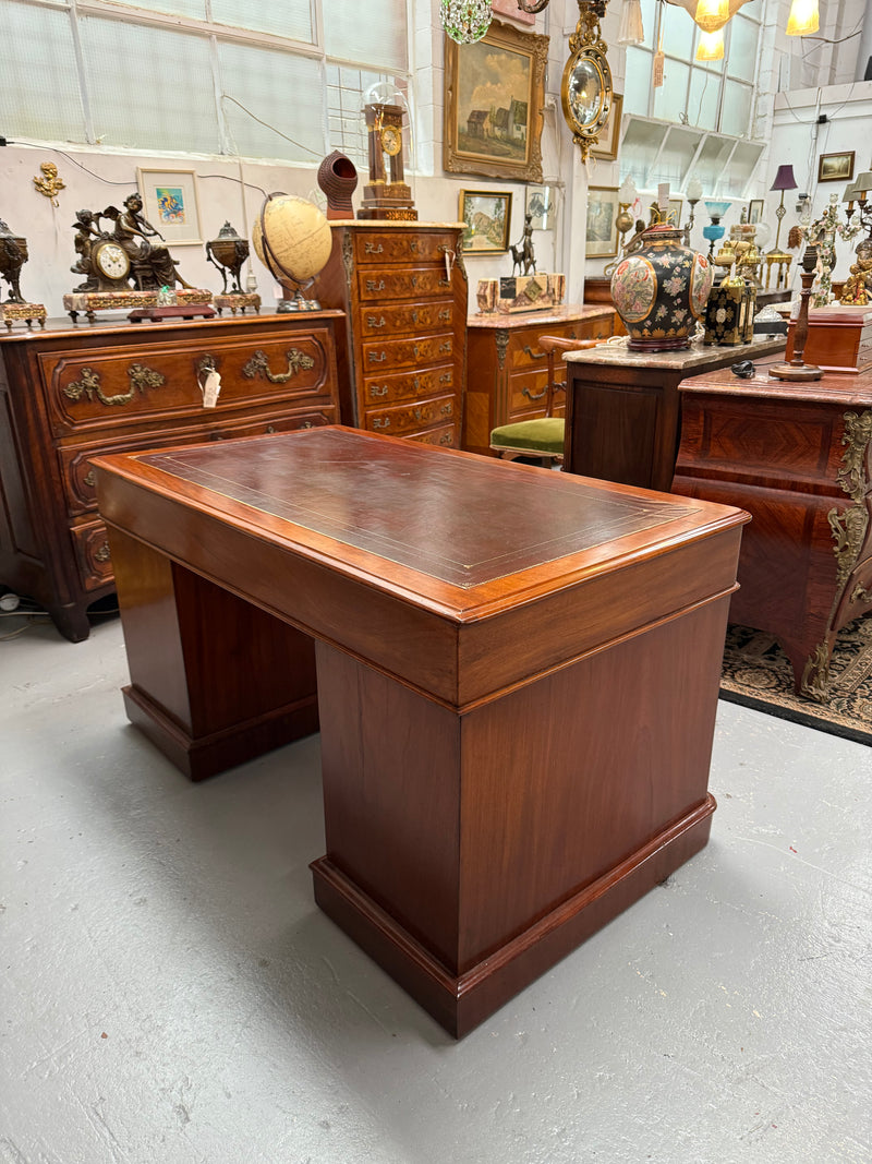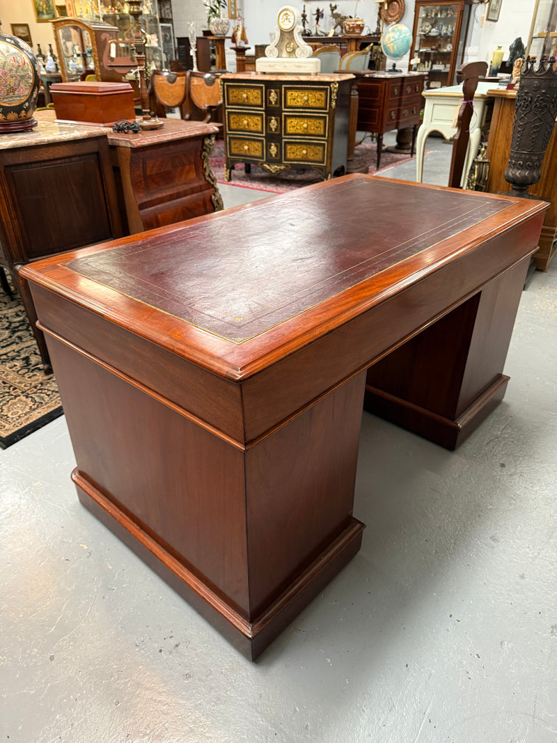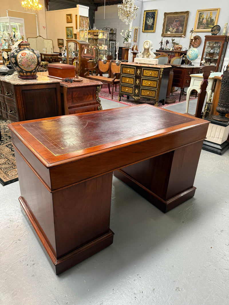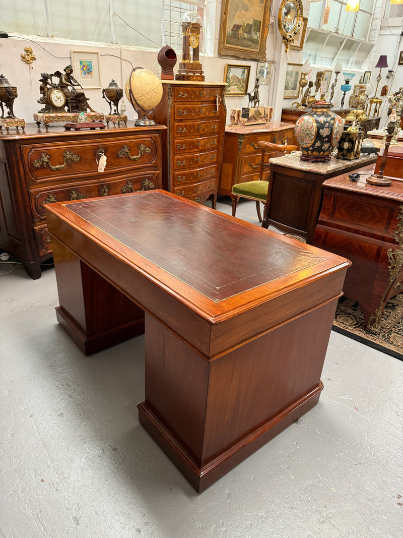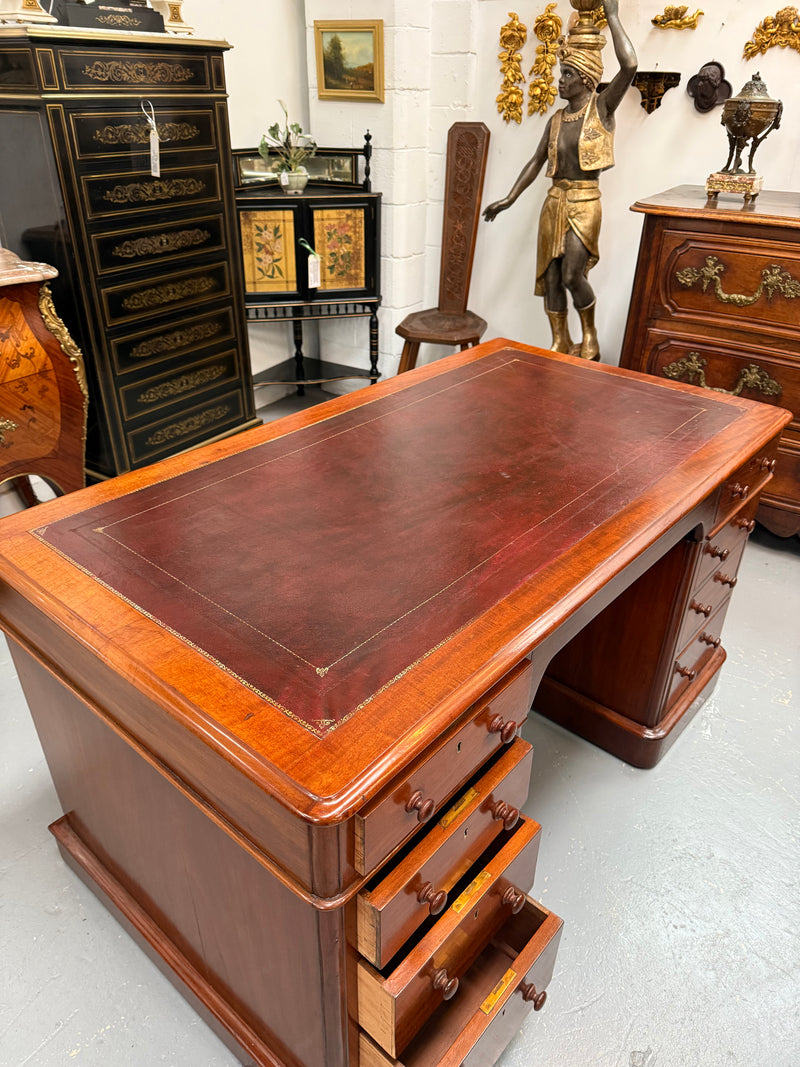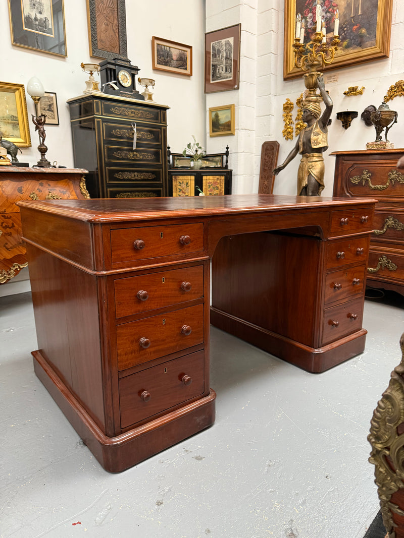 Antique Victorian walnut partners desk, in good detailed condition with a leather inset gilt tooled top and lots of useful drawers. Please see photos as they form part of the description and condition.