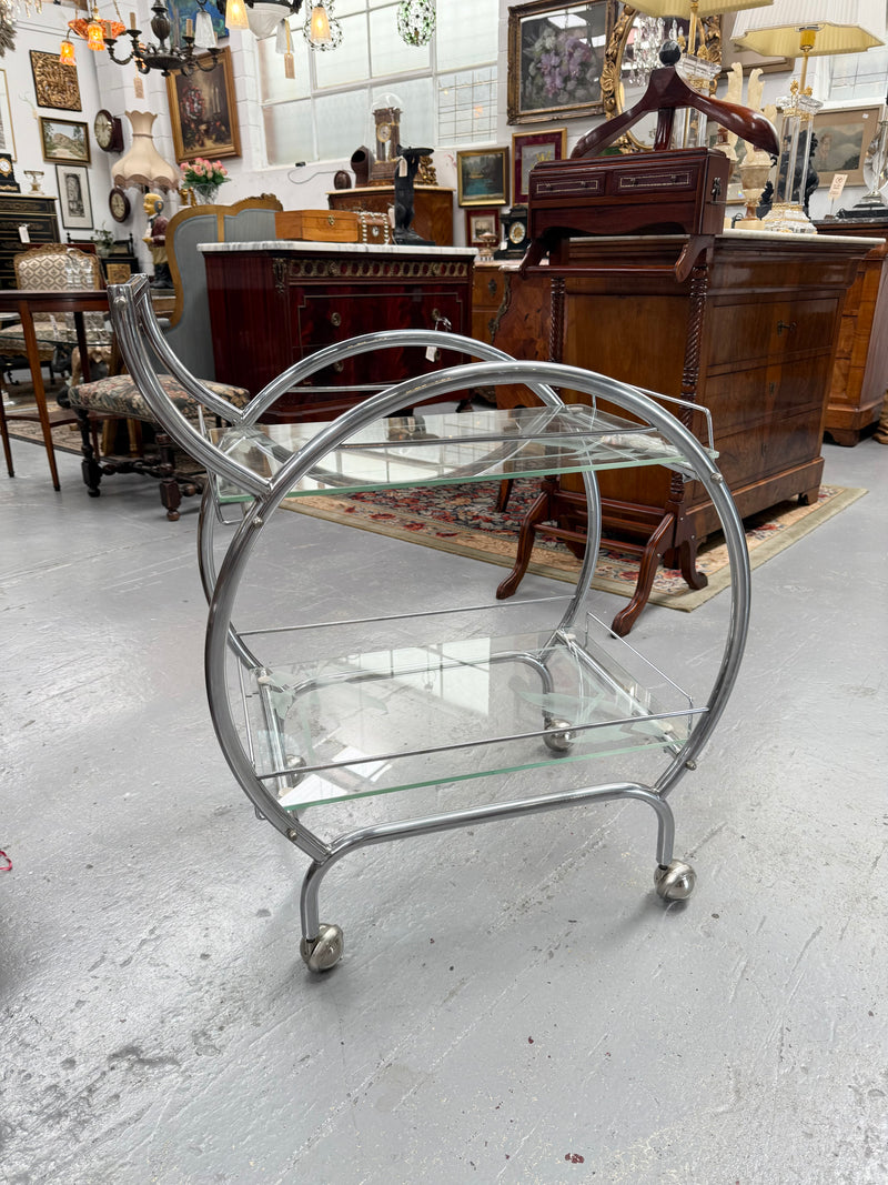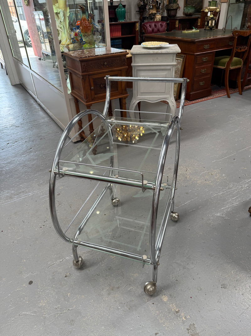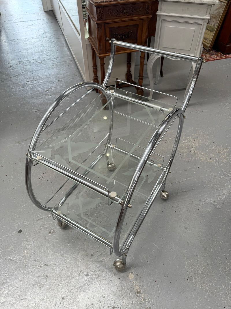 Stunning Art Deco Glass & Chrome Auto Trolley