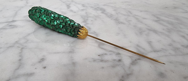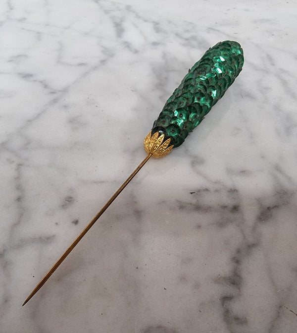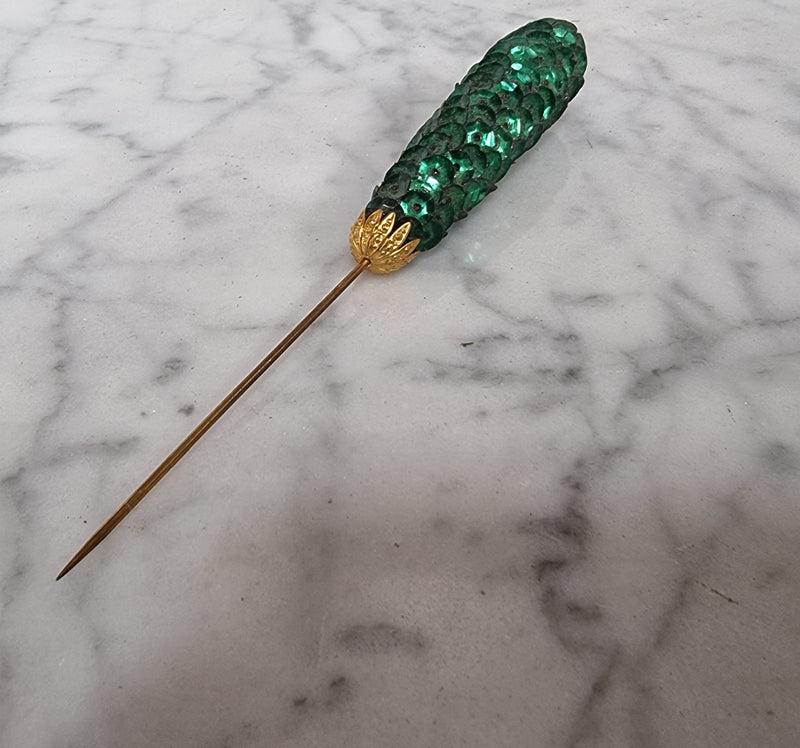 Lovely Art Deco green hat pin, in good condition. See photos as they form part of the description.
