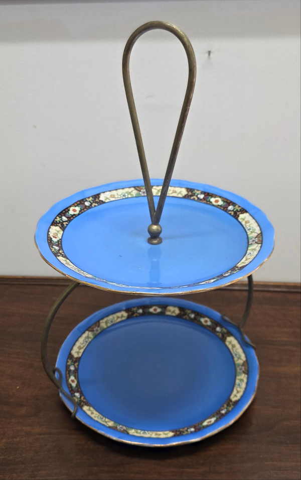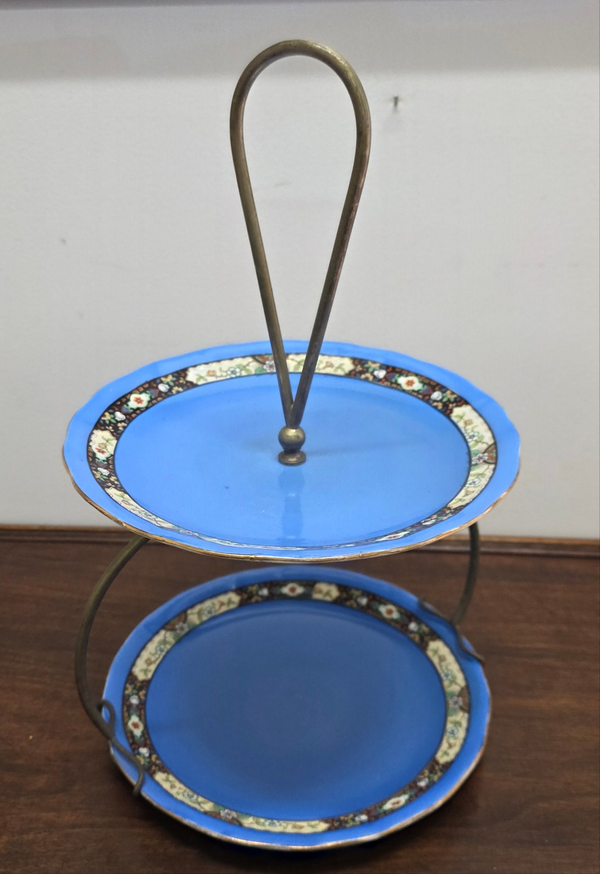 Stunning blue Art Deco cake/dessert two tier serving dish stand. It is in good original condition. Please see photos as they form part of the description.