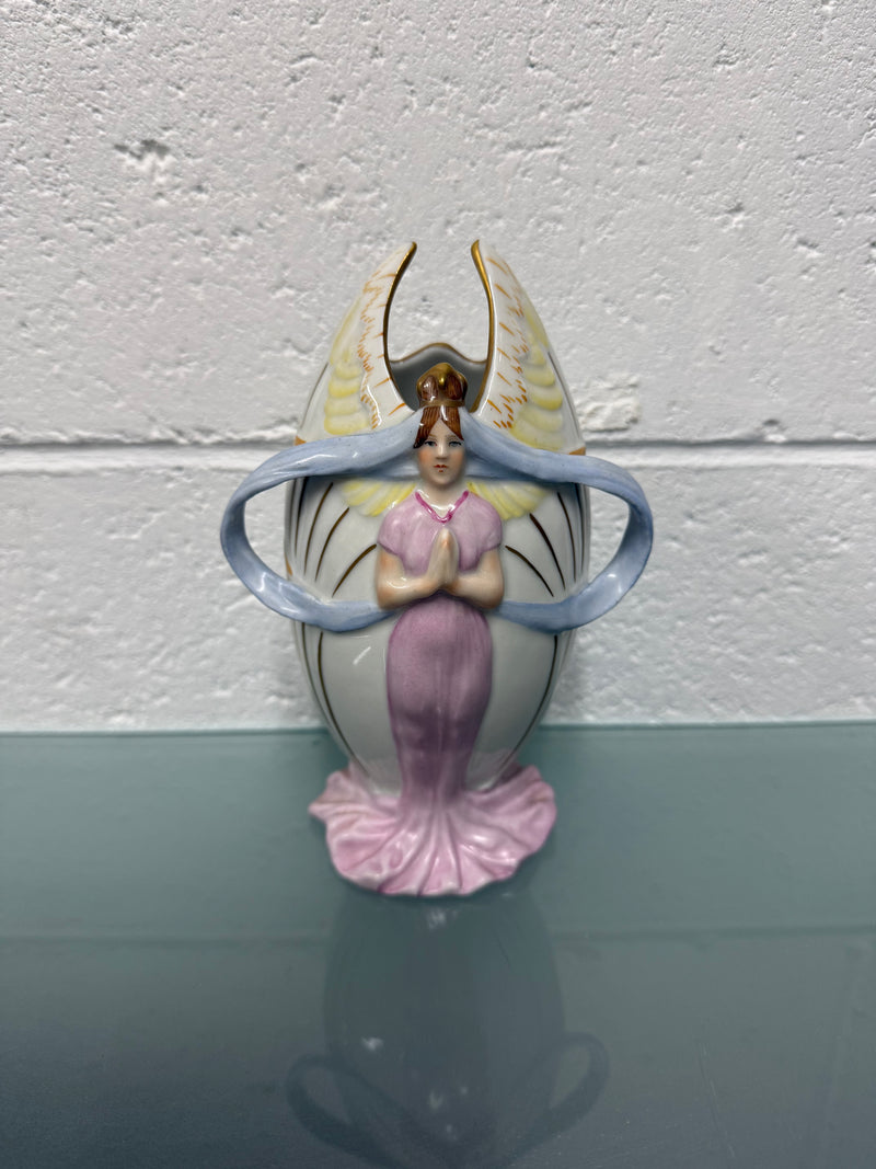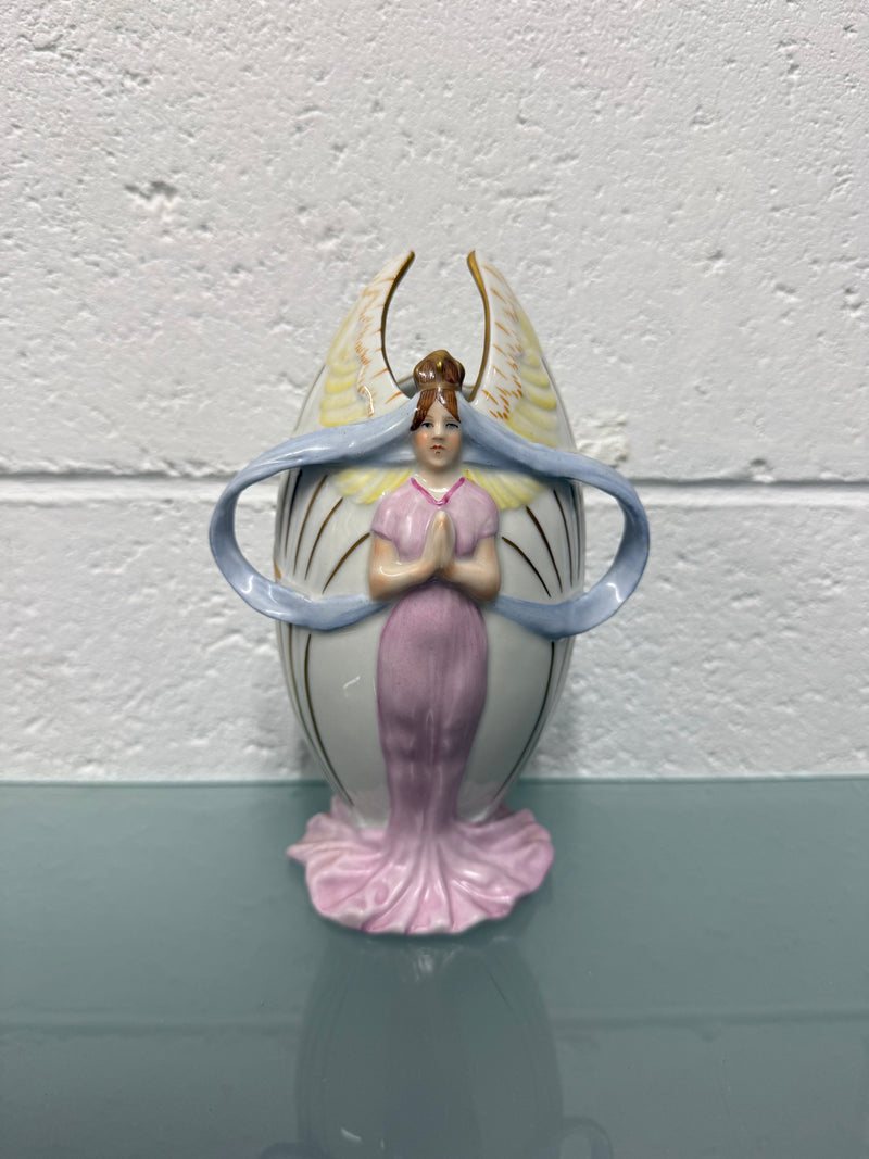 Attractive Art Nouveau Dresden PMP Style Vase depicting an angel. In good original conditon. Please see photos as they form part of the description.