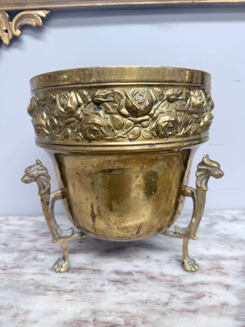 Stunning rose designed Art Nouveau style Edwardian brass jardiniere/pot plant holder. It is in good original condition. Please see photos as they form part of the description.