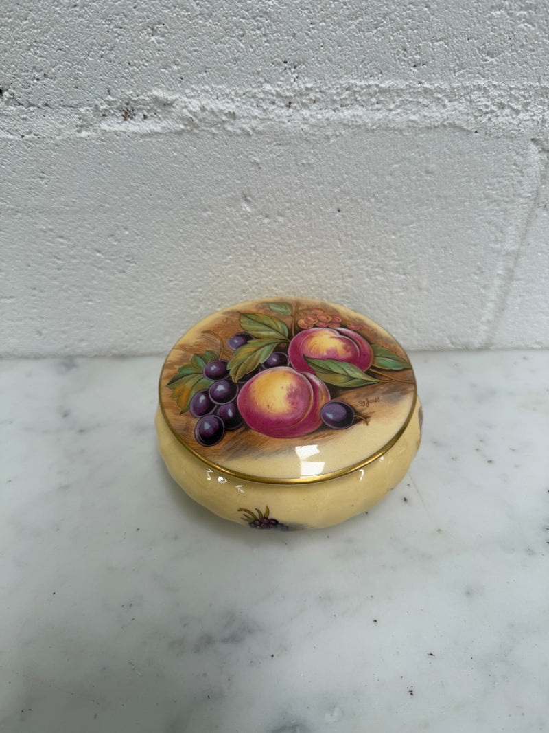 Aynsley Orchard Gold bone China porcelain trinket box with lid, it is in good original condition. Please see photos as they form part of the description