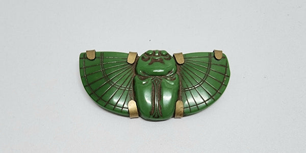 Lovely Vintage Egyptian Revival Scarab Brooch Vintage Egyptian revival scarab brooch. It has been sourced locally and is in good original condition. Please view photos as they help form part of the description. Australia Wide Delivery We can arrange delivery to: Melbourne, Hobart, Launceston, Sydney, Adelaide, Perth, Canberra, Brisbane, and regional centres. Add this item to your cart and we will get back to you with a shipping quotation. Requesting a quote will place a 24 hour hold on the item to ensure you don't miss out while awaiting a delivery quote.