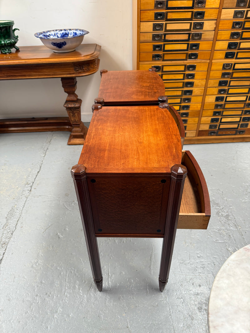 Impressive pair of Art Deco single drawer Amboyna cabinets. In good original condition, Please see photos as they form part of the description and condition.