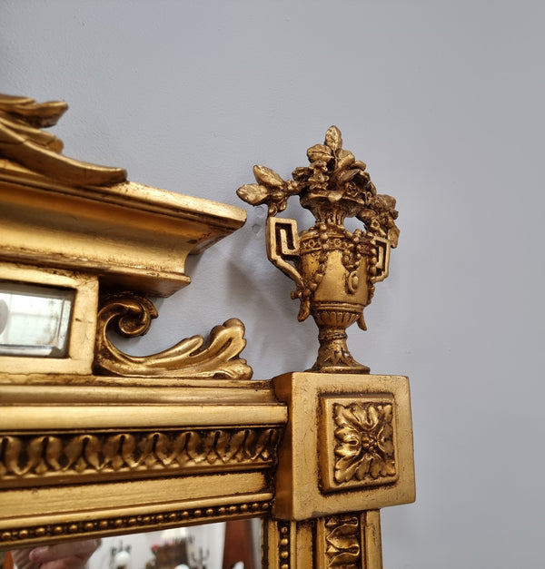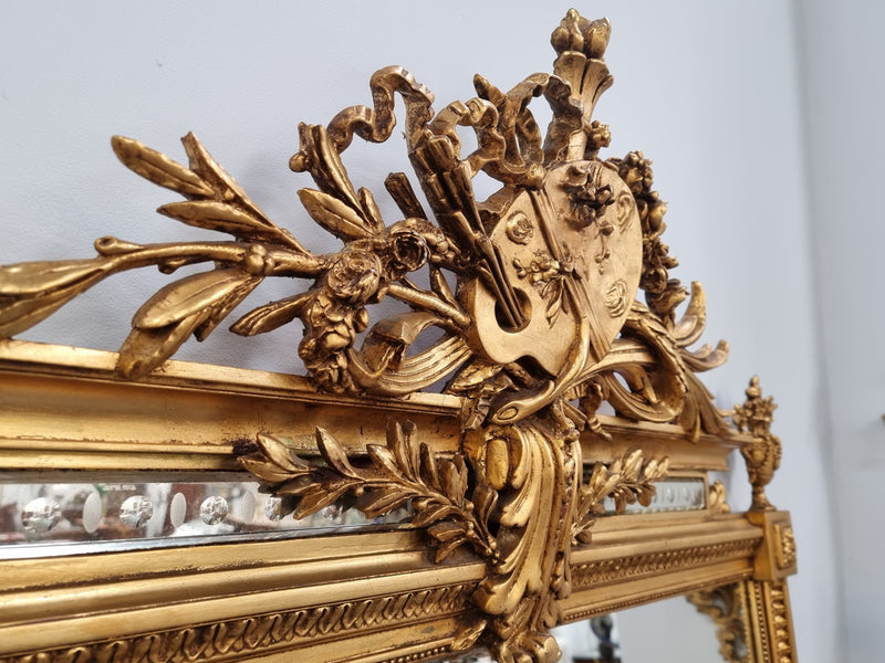 Beautifully Carved and Decorated Antique Gilt Napoleon III Louis XVI Style Gilt Overmantel Mirror